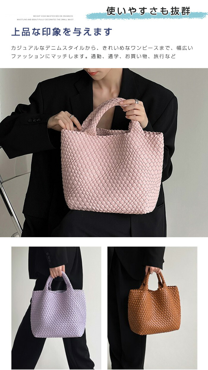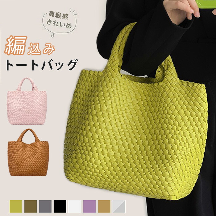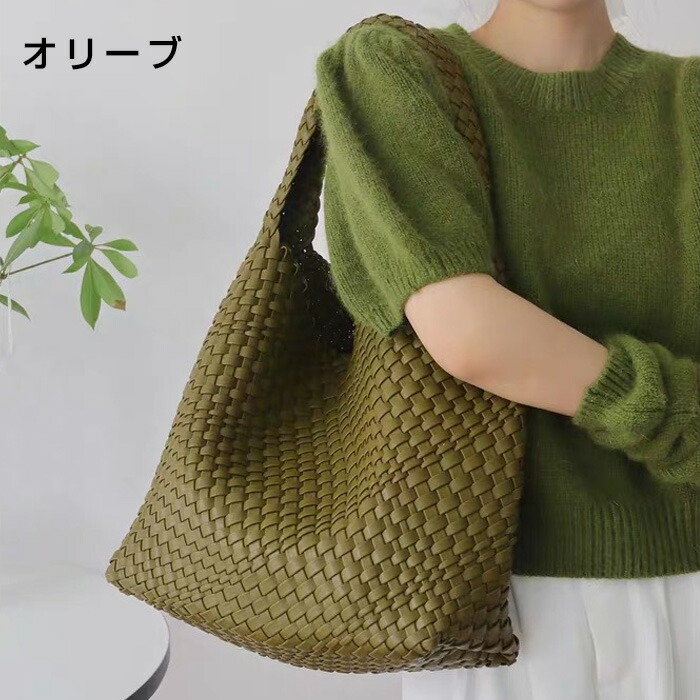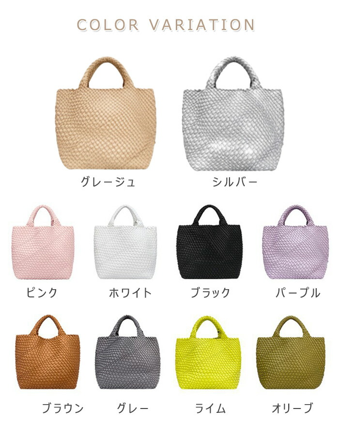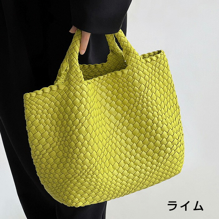 編み込み トートバッグ 編みバッグ メ バッグ 小物 ブランド雑貨 新登場! ライム ブラウン ブラック グレー ピンク パープル ホワイト グレージュ オリーブ シルバー