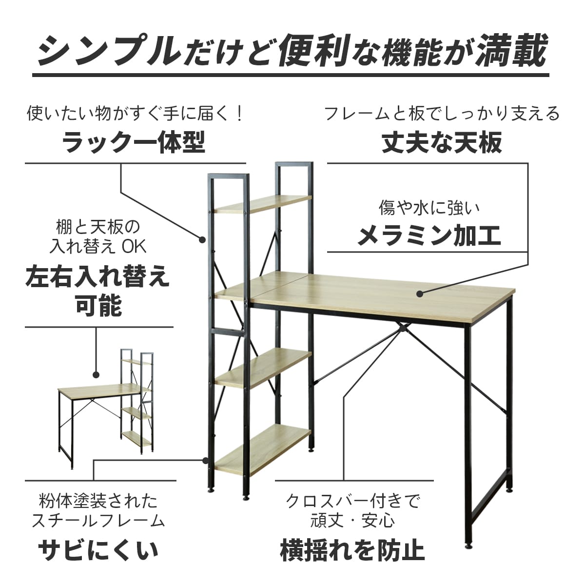 デスク パソコンデスク 学習机 PCデスク 幅115 ラック付きデスク ラック付き ハイタイプ 収納 机つくえ 木製 オフィスデスク ワークデスク 学習デスク 勉強机 作業 ゲーミングデスク