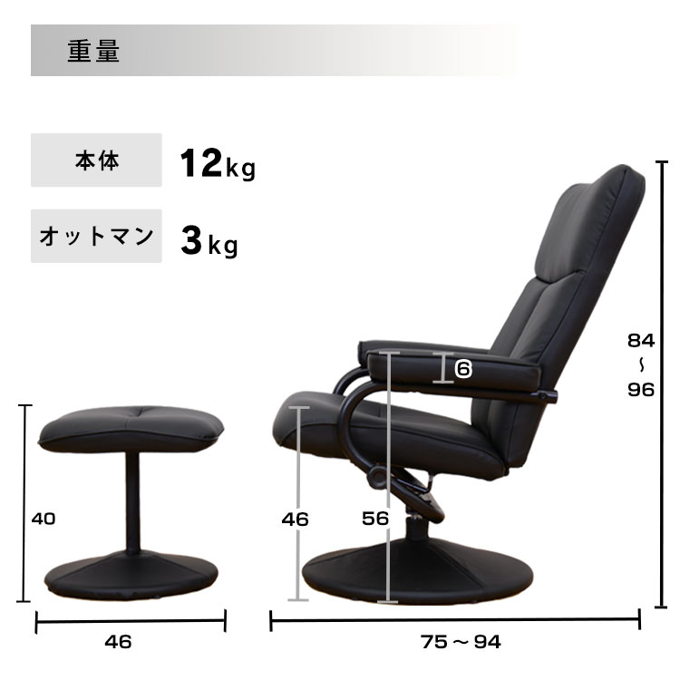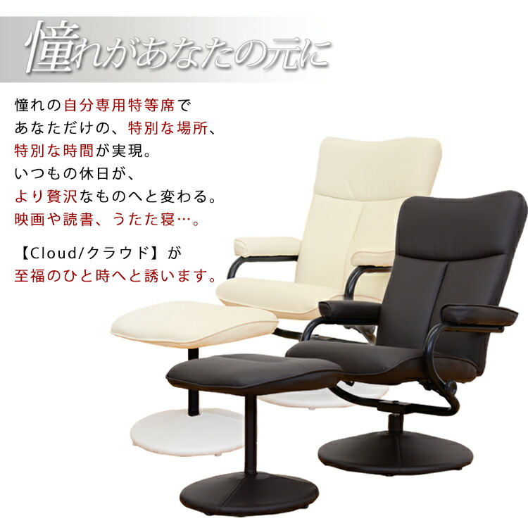 リクライニングチェア オットマン付 リ ブラウン ブラック アイボリー