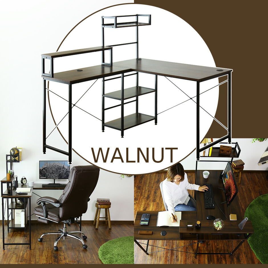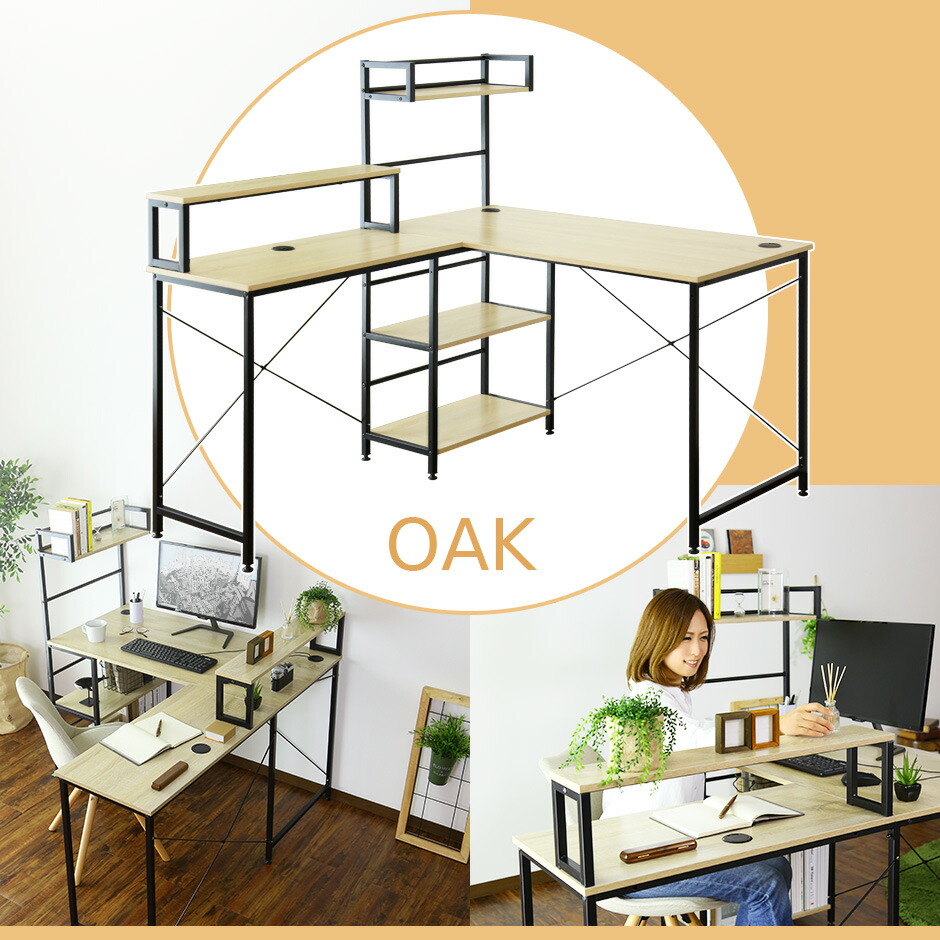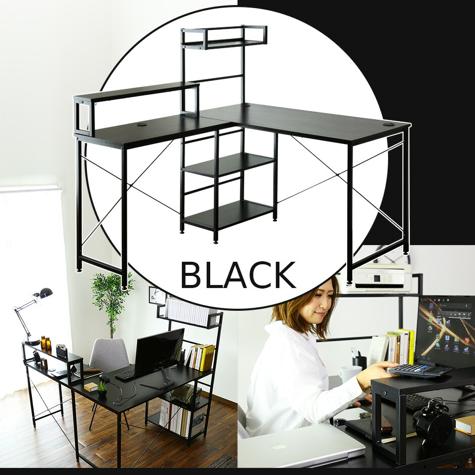 パソコンデスク デスク PCデスク L字型 コーナー ラック付き 木製 オフィスデスク 幅140 l字 L字 角置き 机 ゲーミングデスク 勉強机 書斎机 書斎デスク 学習机 ワークデスク