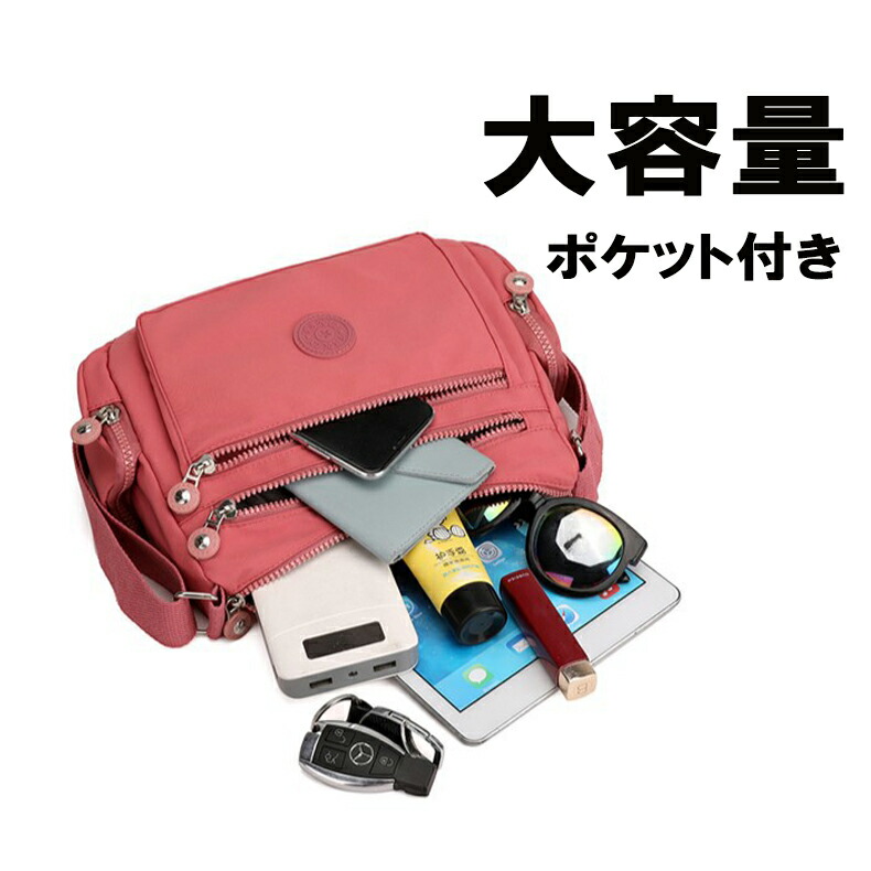 ショルダーバッグ 軽量 多層とポケット バッグ 小物 ブランド雑貨 新作 ブラック グリーン ライトパープル ピンク