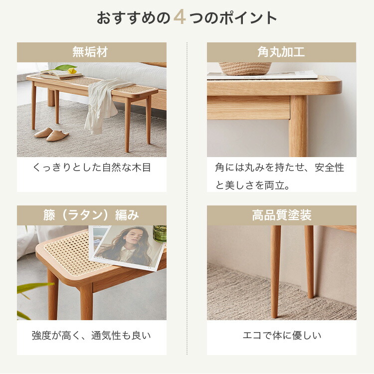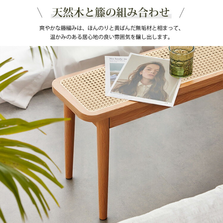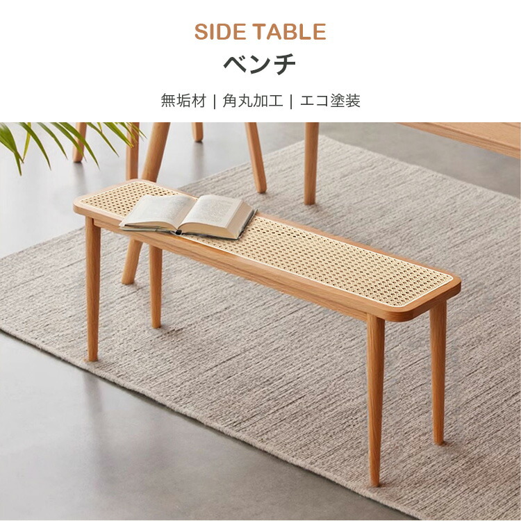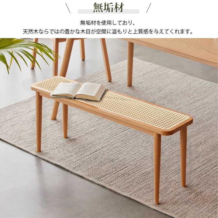 ダイニングベンチ 木製 ラタンベンチ 1脚 2脚 4脚 幅80cm 幅100cm