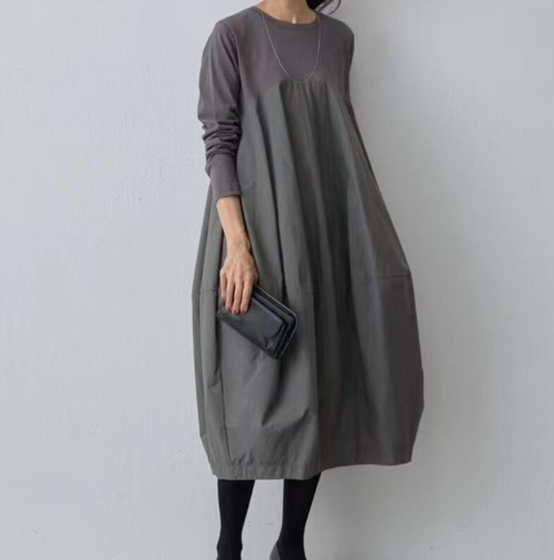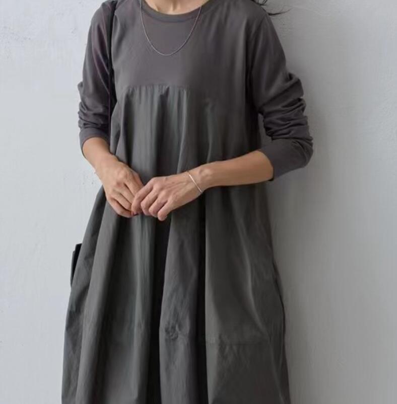 ロングワンピース ニット切り替えワンピ レディースファッション 超目玉商品 ブラック グレー