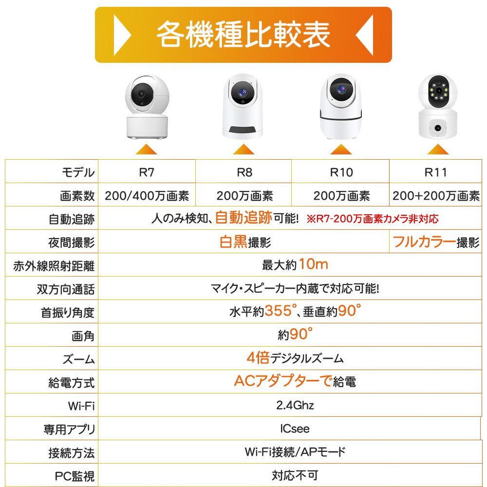 ペットカメラ 見守りカメラ ベビーカメ R7-2MP R8-2MP R10-2MP R7-4MP R11-4MP 不要 16GB 32GB 64GB 128GB