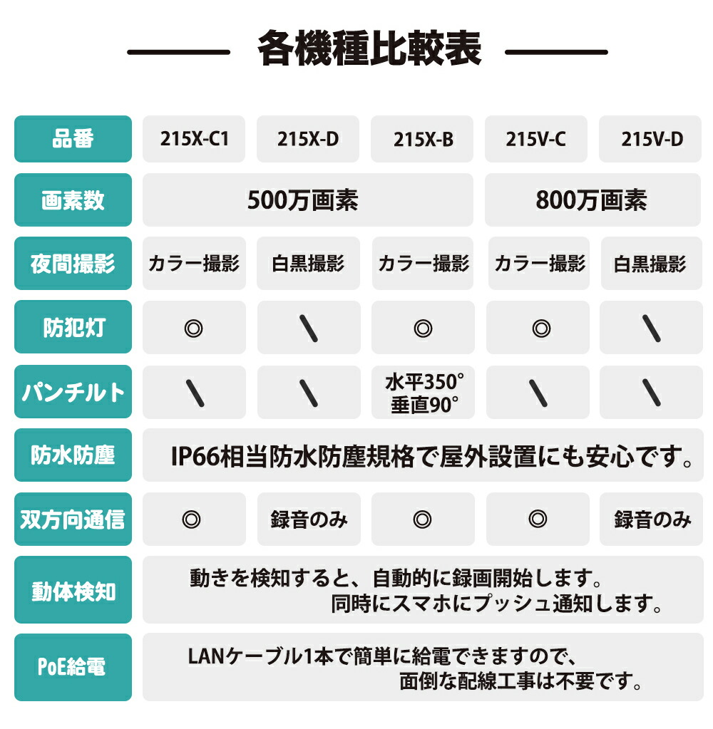 防犯カメラ 最大800万画素 4k P 215X-C1 215X-D 215X-B 215V-C 215V-D 215V-B