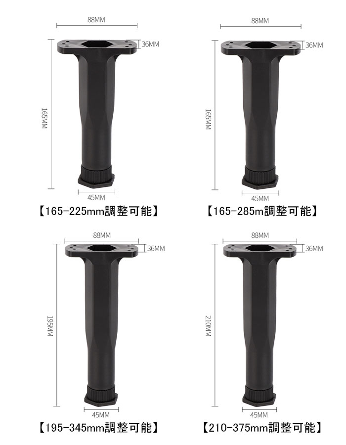 家具脚 テーブル脚 家具足 伸縮式 D 【165-225mm調整可能】 【165-285m調整可能】 【195-345mm調整可能】 【210-375mm調整可能】