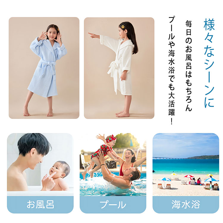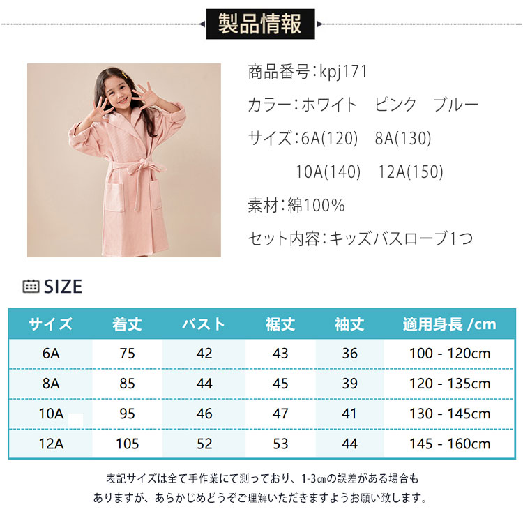 ポンチョタオル 子供 バスローブ キッ キッズ ベビー マタニティ 新登場! ホワイト ピンク ブルー 6A(120) 8A(130) 10A(140) 12A(150)