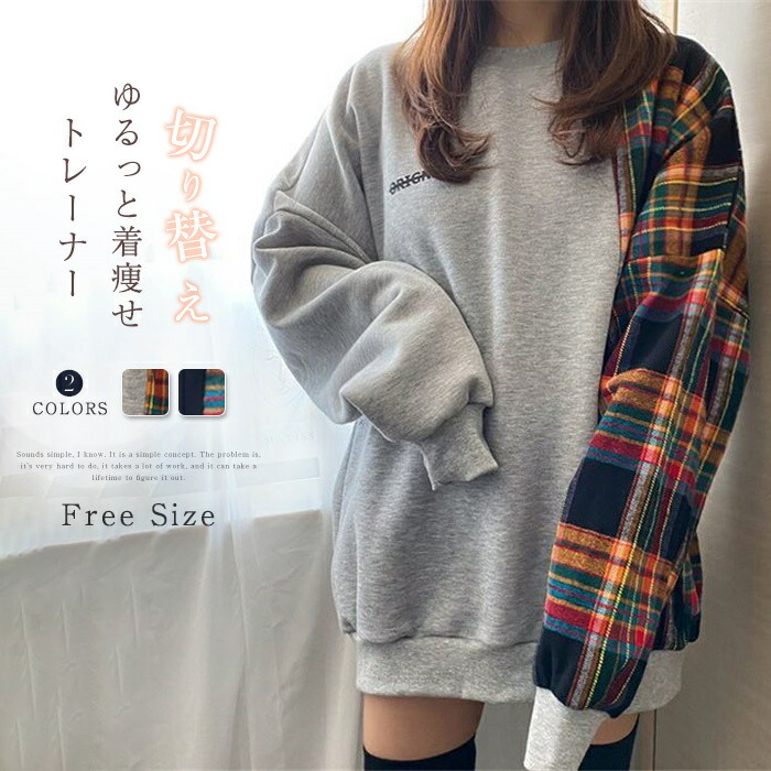 トレーナー スウェット レディース 長 レディースファッション 人気 グレー ブラック