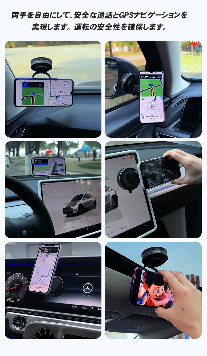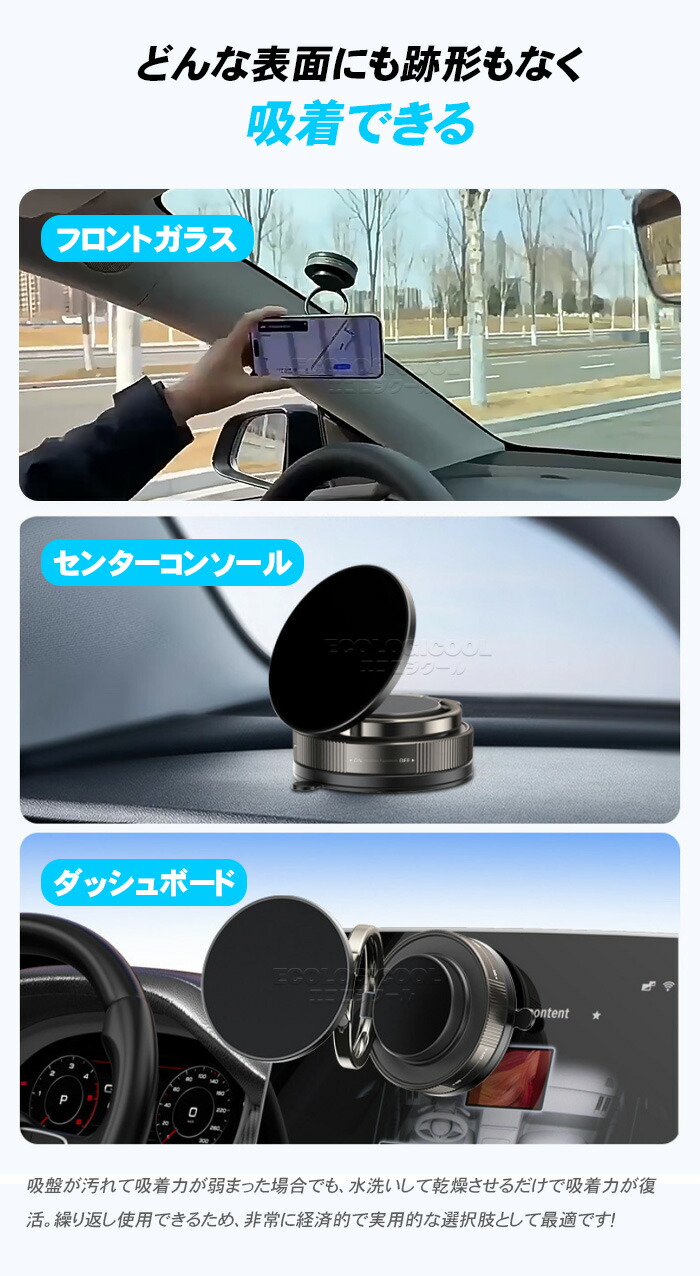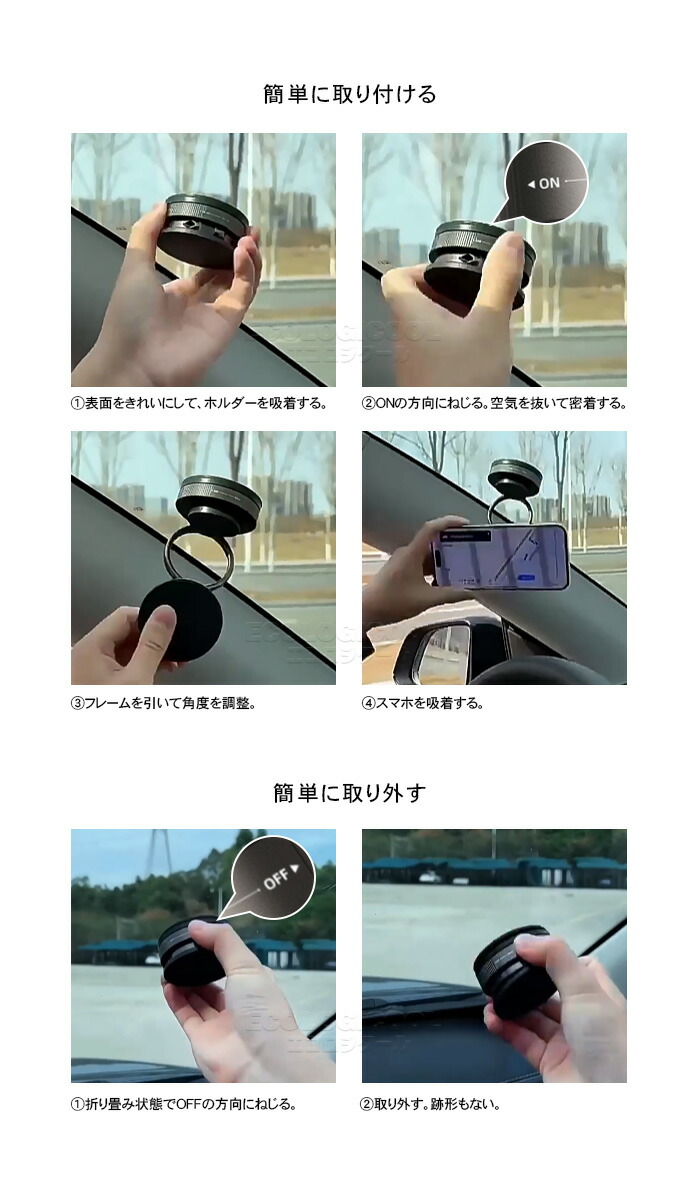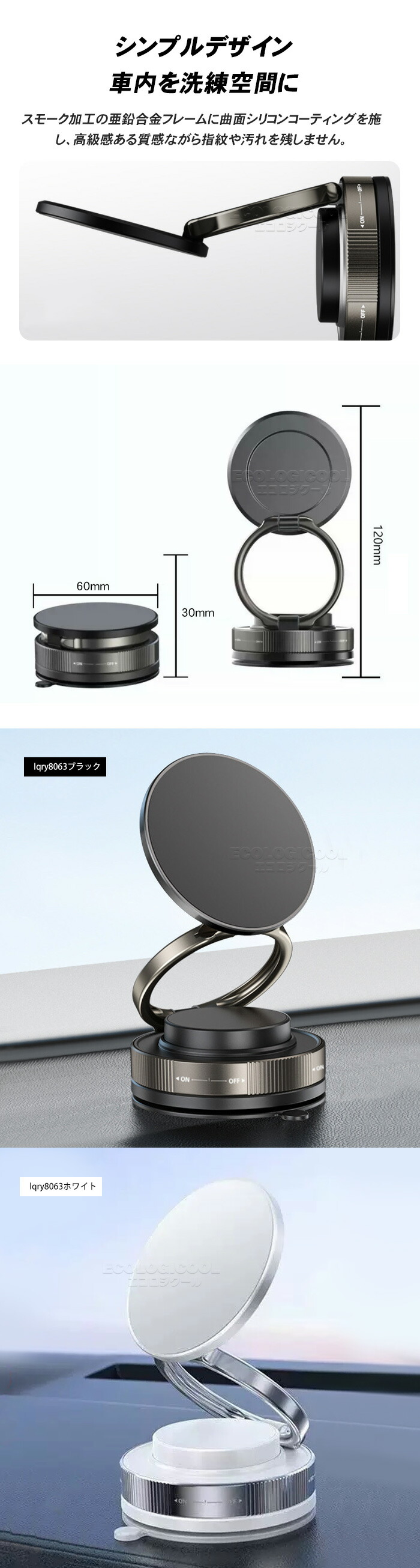 スマホスタンド 車 車載 真空吸着 マ ホワイト ブラック