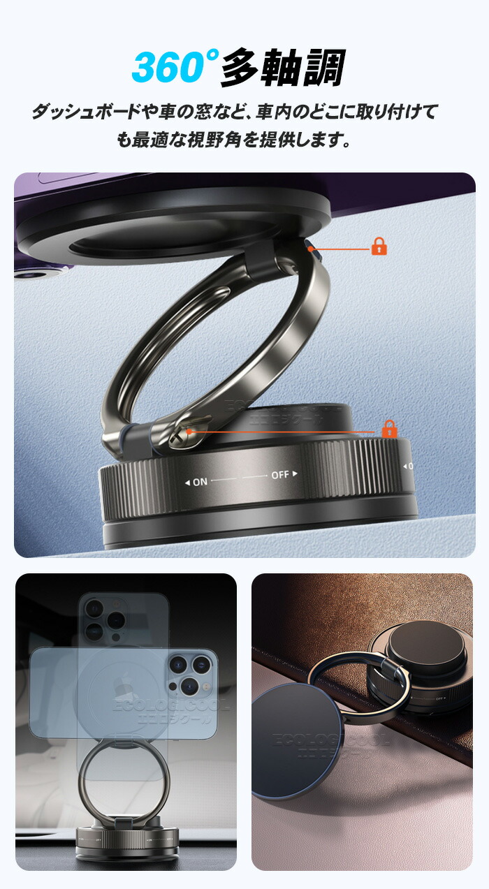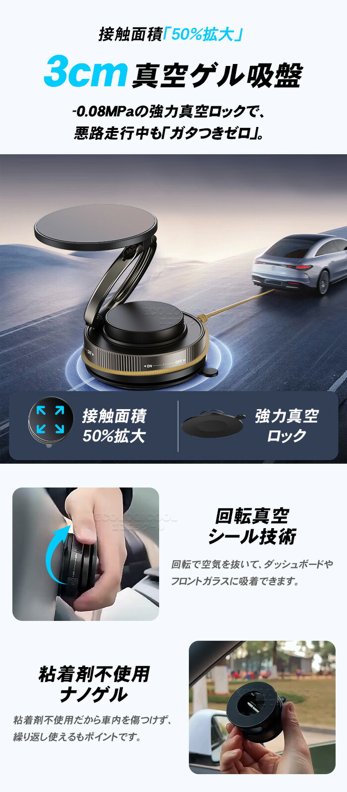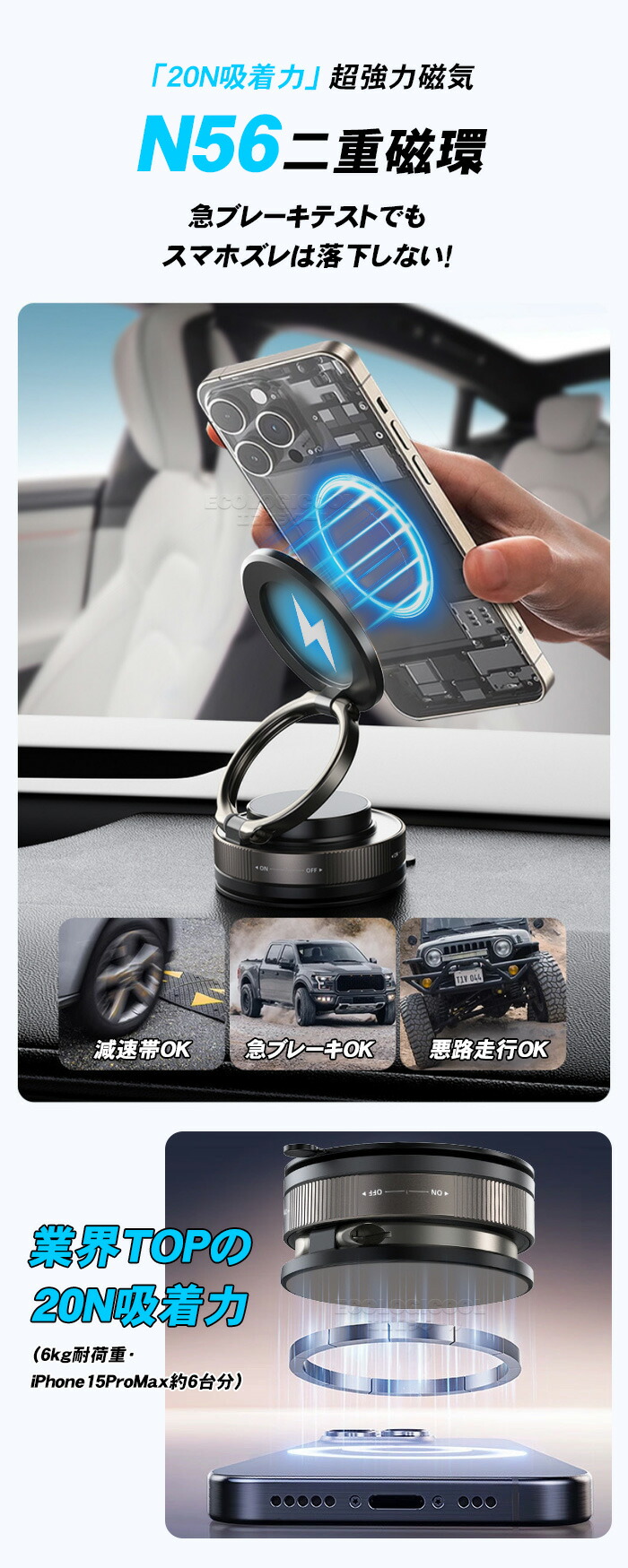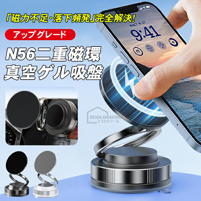 スマホスタンド 車 車載 真空吸着 マ ホワイト ブラック