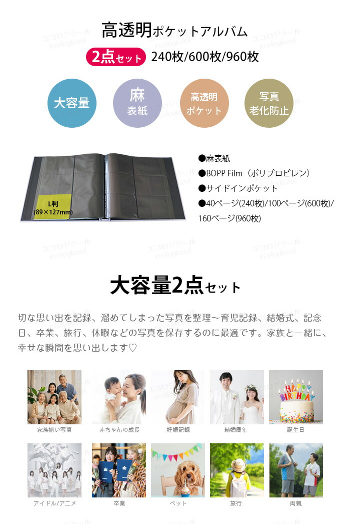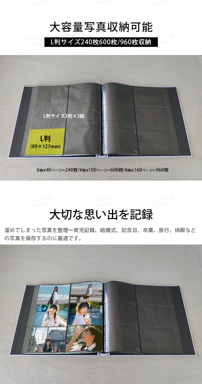 アルバム L判 ポケットアルバム 960 600 240枚×2冊 大容量 ポケット式 フォトアルバム ウィンドウあり 2点セット 自由に選択 写真 ポケット収納タイプ おしゃれ かわいい 整理 麻素材