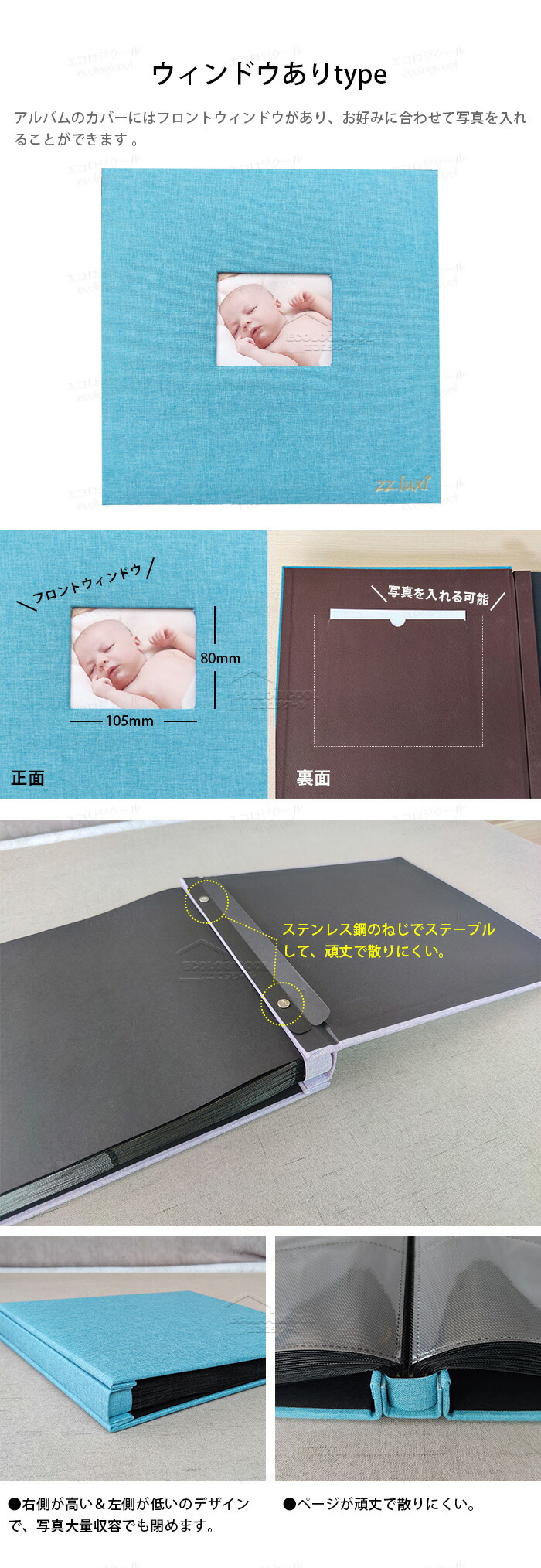 アルバムのカバーにはフロントウィンドウがあり、お好みに合わせて写真を入れることができます 。
