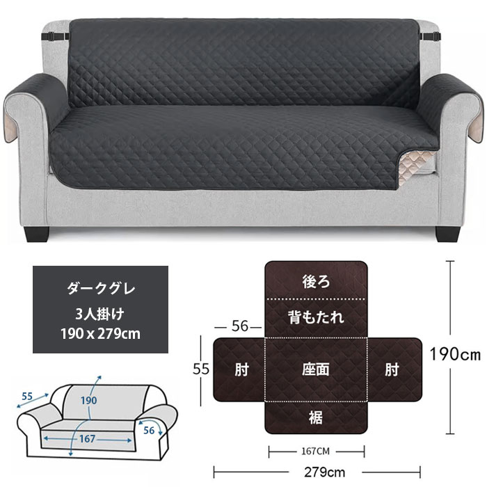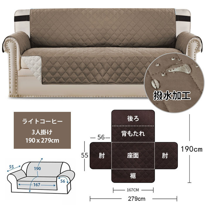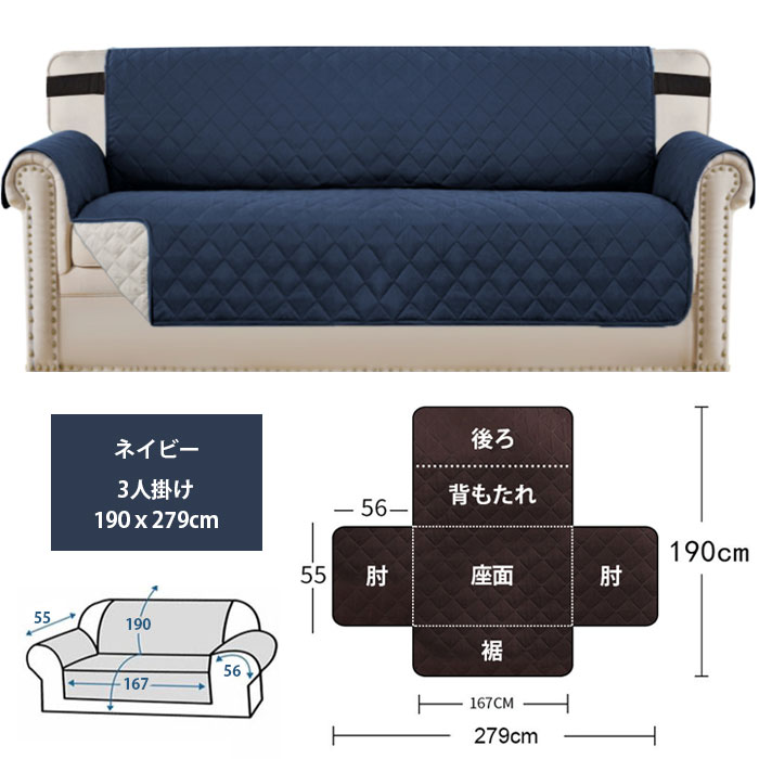 ソファーカバー 3人掛け マルチカバー カーキ ライトコーヒー ブルー グレー ダークブラウン ネイビー ホワイト ブラック グリーン ライトグレー ダークグレー ライトブラウン カーキベージュ 190×228cm 190x279cm