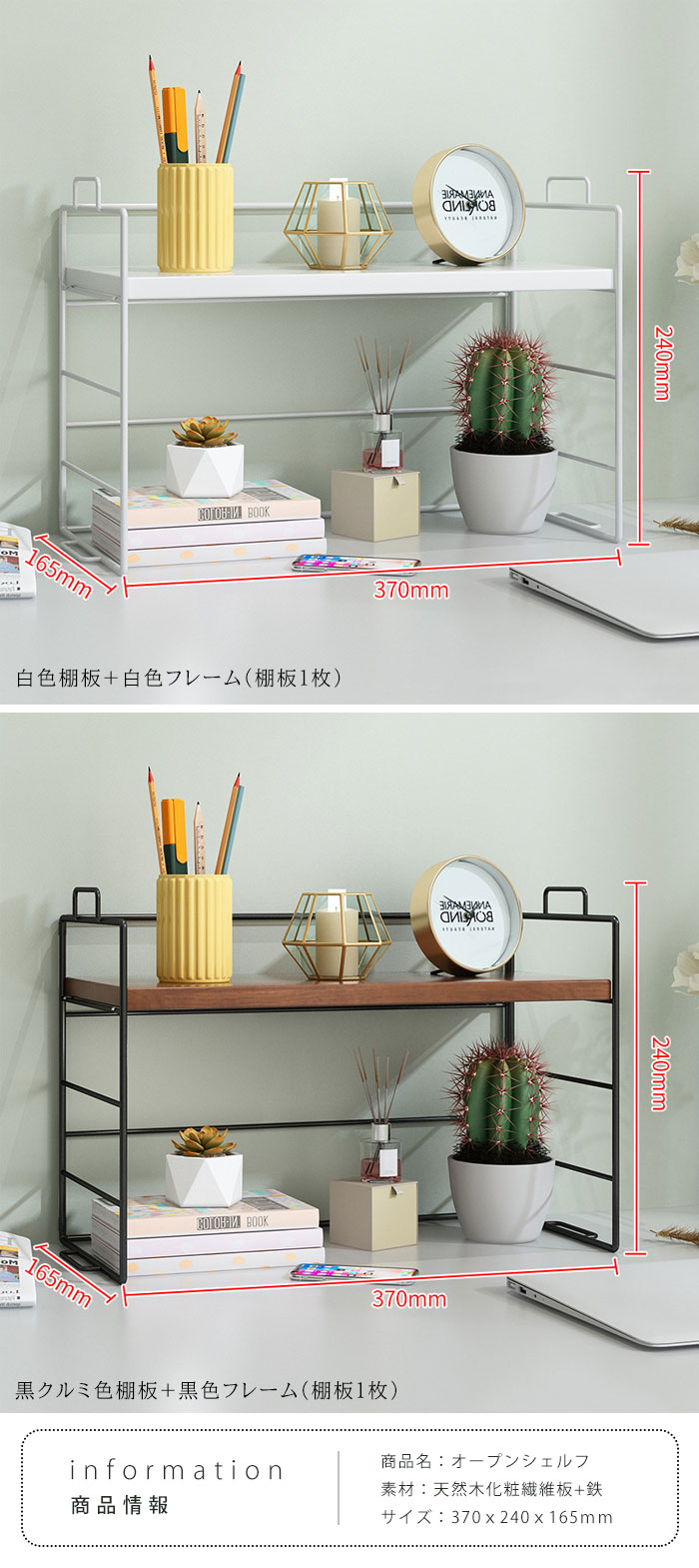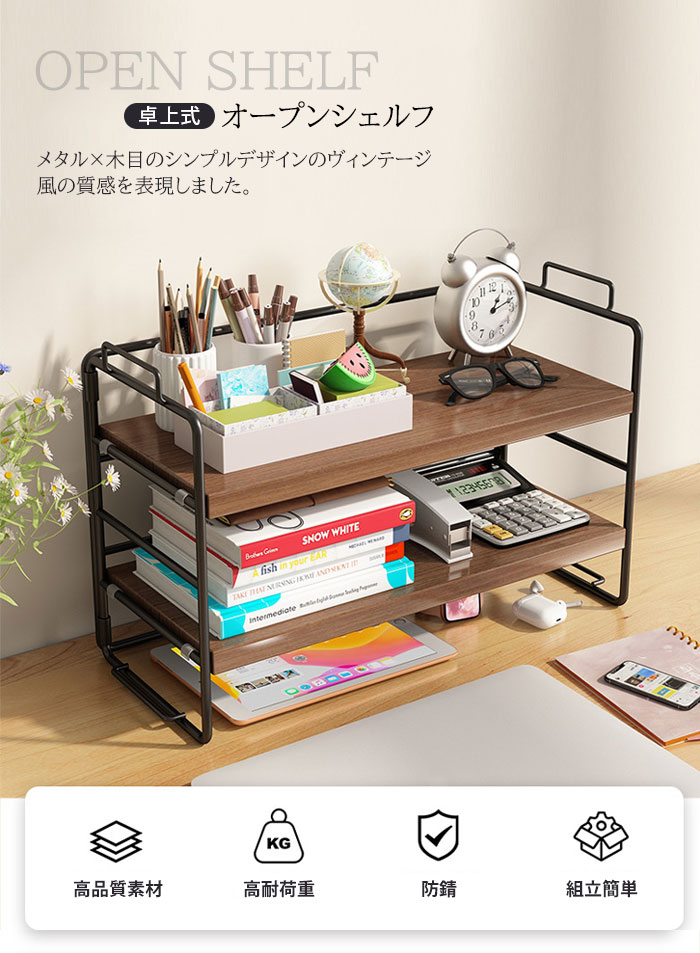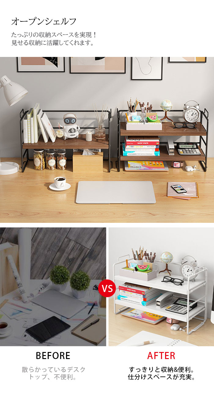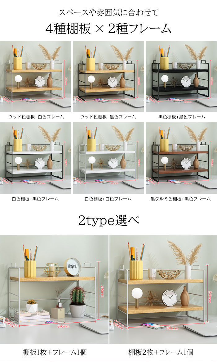 ラック 棚 ミニラック 卓上 おしゃれ ウッド色棚板+白色フレーム ウッド色棚板+黒色フレーム 黒色棚板+黒色フレーム 白色棚板+白色フレーム 黒クルミ色棚板+黒色フレーム