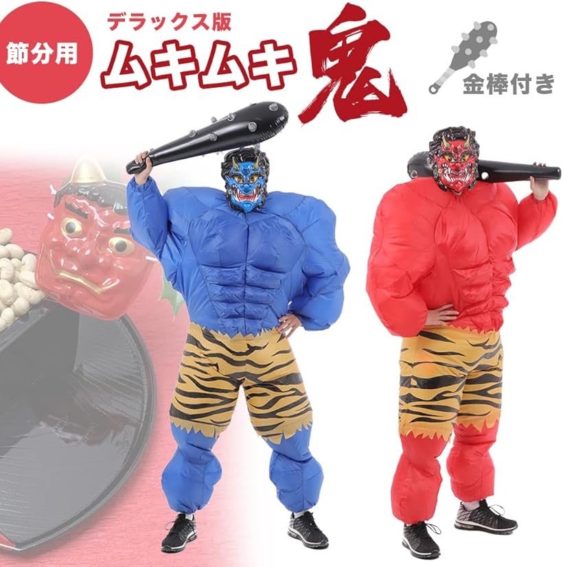 節分 デラックス ムキムキ 鬼 風船型 衣装 コスチューム お面 金棒 セット 赤鬼 なりきりアイテム 変身ベルト おもちゃ 変装 仮装 ホビー コスプレ
