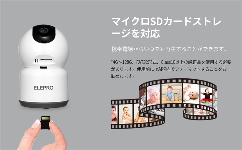 動体検知動画はマイクロSDカード(別売り)に保存され、オンラインで再生できるだけでなく、端末にダウンロードもできます。