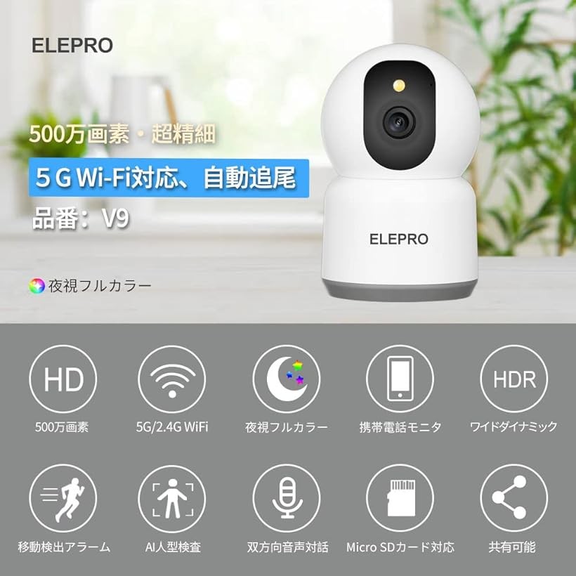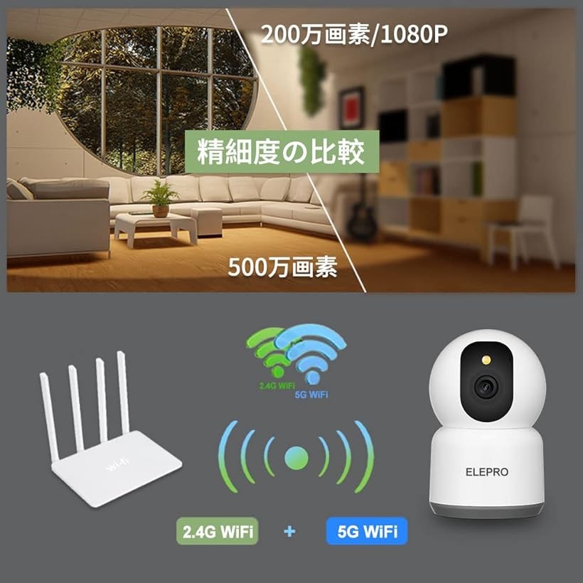 500万画素 5Ghz WiFi対応ペットカメラ 見守りカメラ フルカラーナイトビジョン 防犯カメラ 監視カメラ ベビーモニター ベビーカメラ セキュリティカメラ