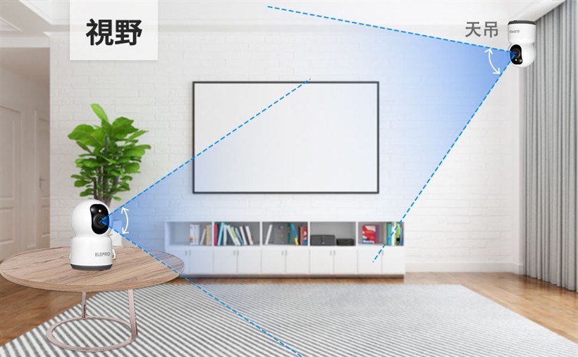 さらに、水平方向に355°パン、垂直方向に75°チルトすることで、部屋全体をスマホで鮮明に監視することができます。