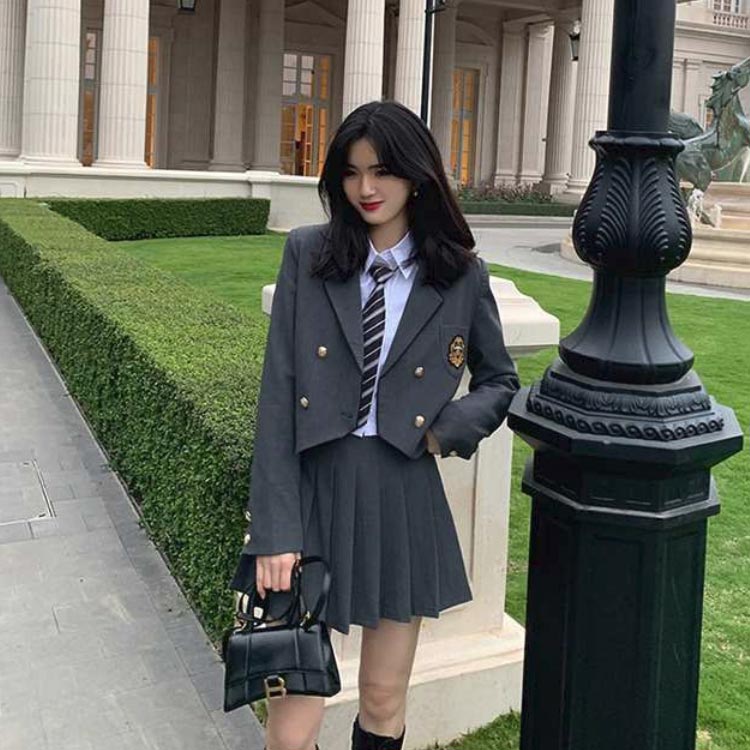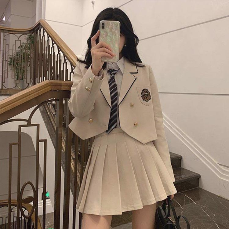 韓国 女の子 スーツ 小学校 制服 フ 学生服 スカート 通販 2点セットベージュ 2点セットグレー S M L XL