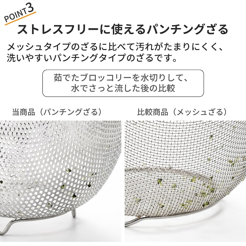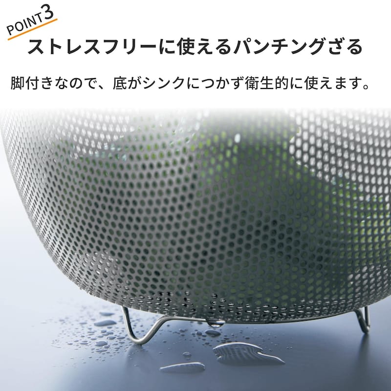ざるについている脚も少し脚長に感じ、シンクの上に置いて水切りしておくのも安心でした!