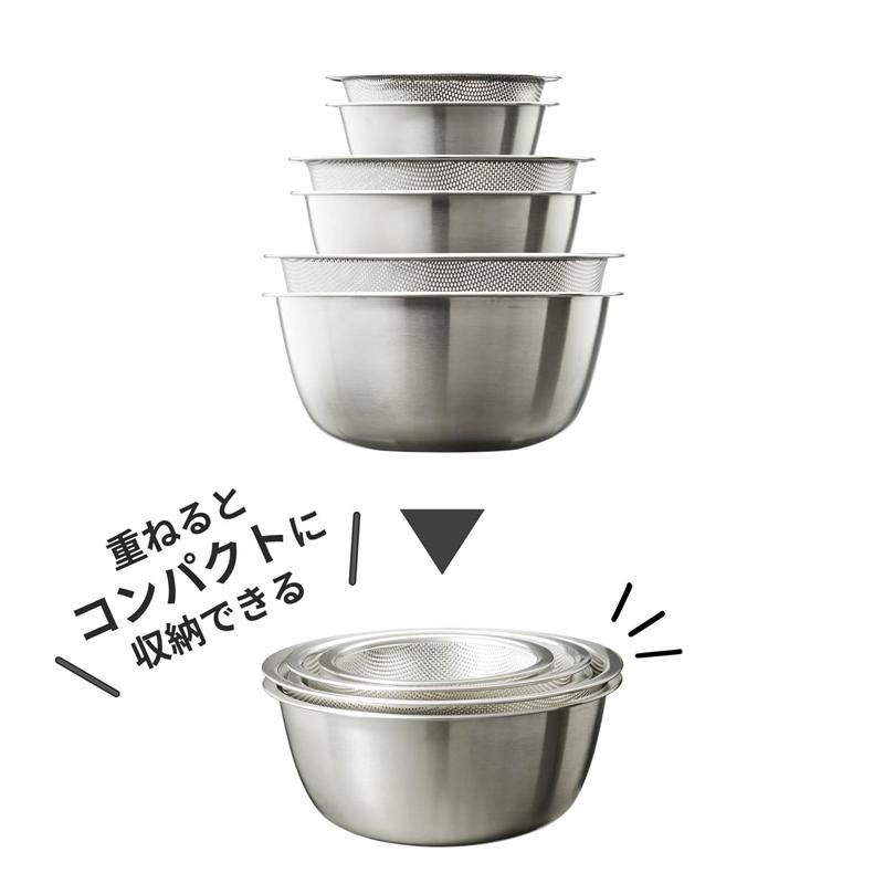 6点セット ボウル ザル セット すっきり 収納 | 食洗機対応 ステンレスボウル ざる ボール ツール 道具 ステンレス 下ごしらえ コンパクト 新生活 一人暮らし キッチ 目盛り
