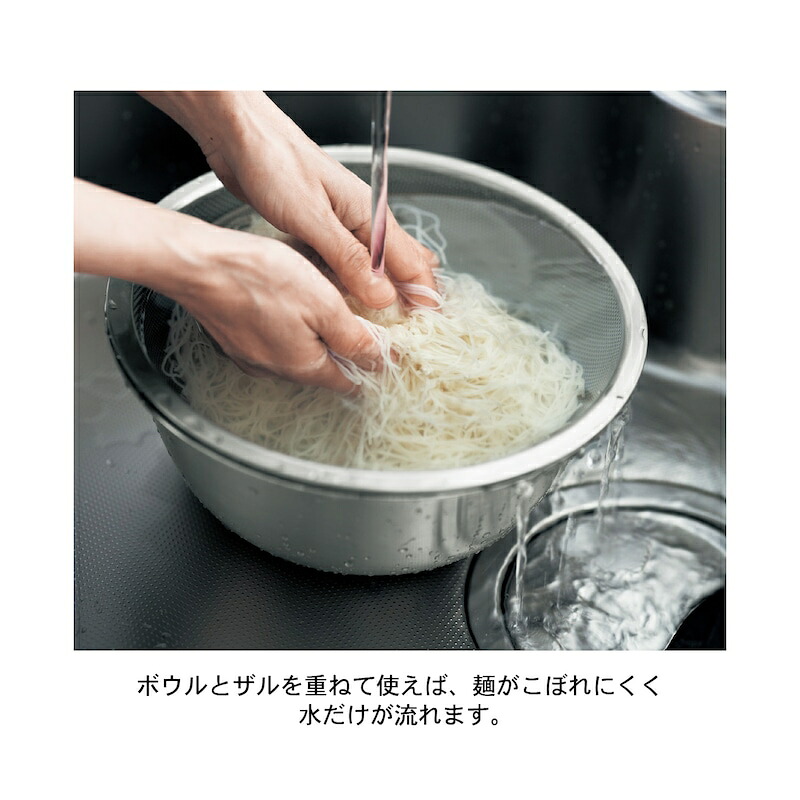 ・ボウルにザルをかぶせて振れば、葉野菜などの水切りがしやすくなります