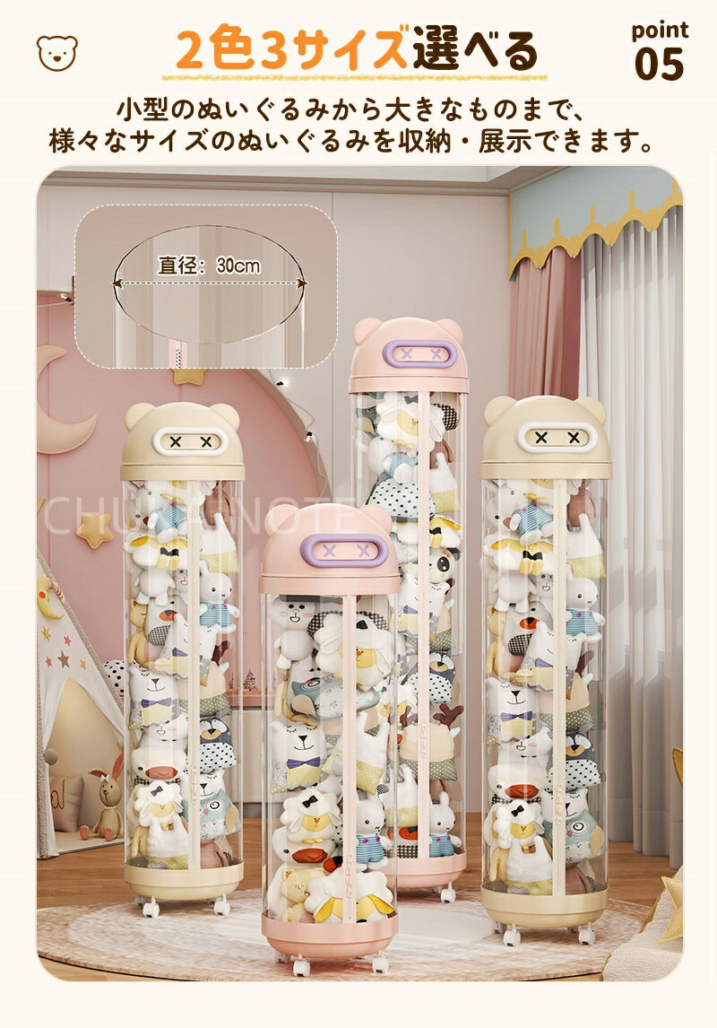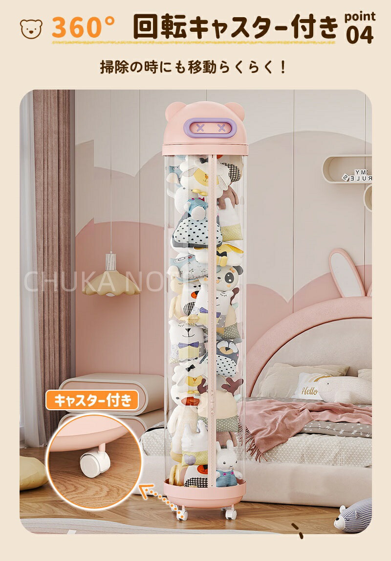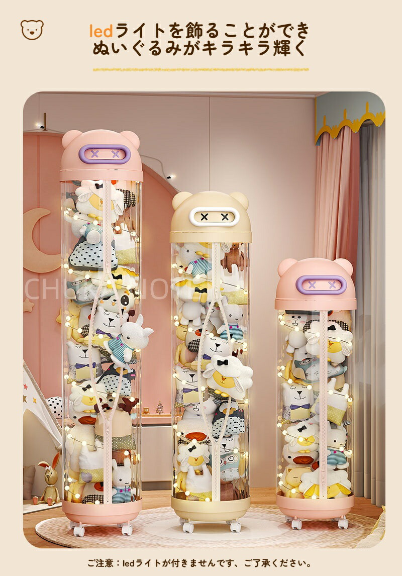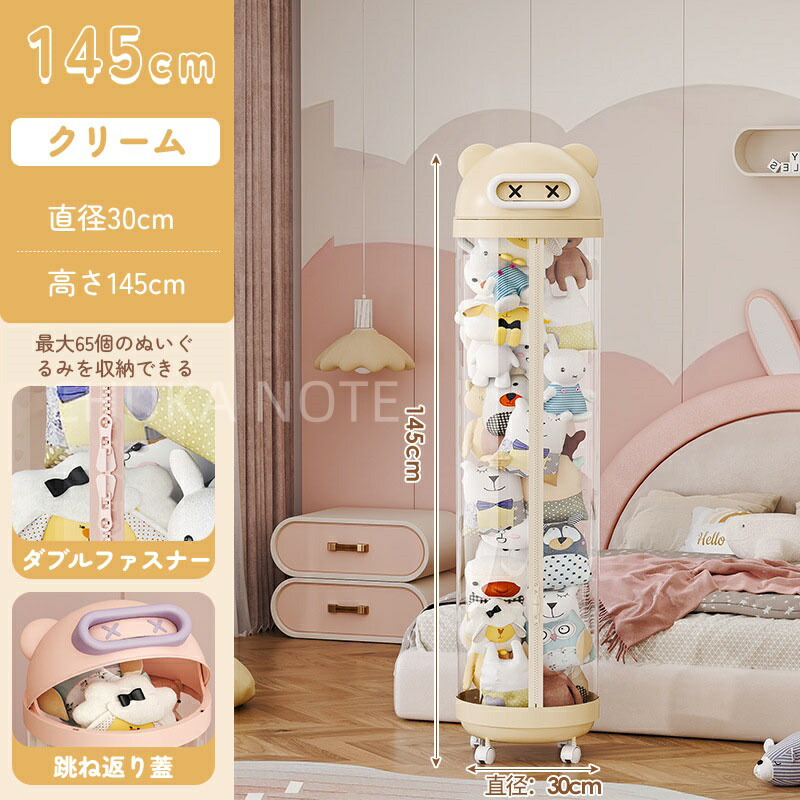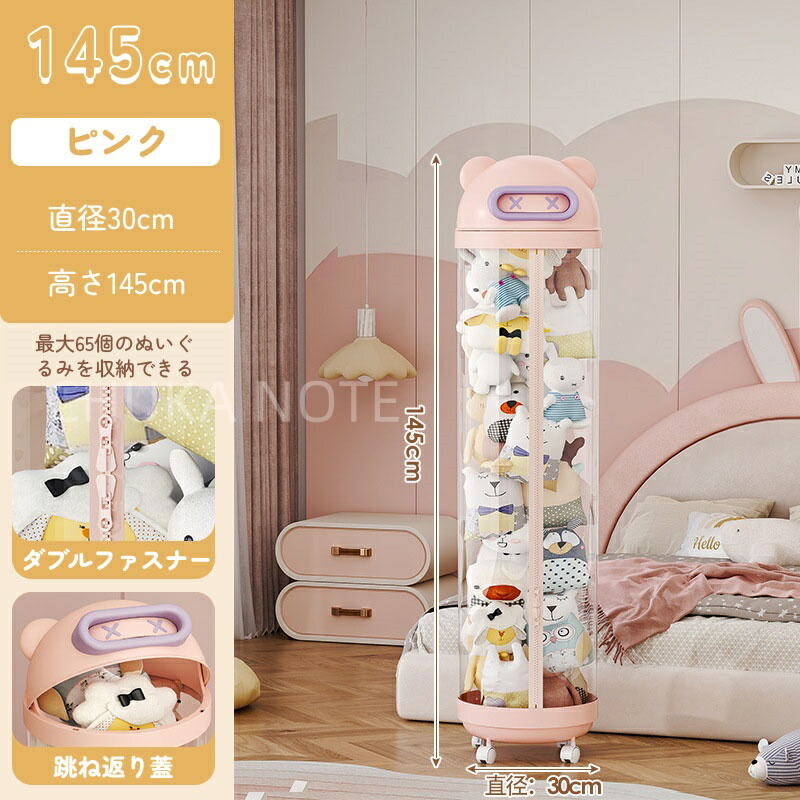 ぬいぐるみ 収納 ジッパータイプ 透明 ピンク クリーム 115cm 145cm 175cm