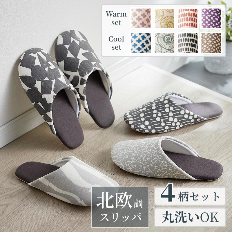 丸洗いOK 北欧調 おしゃれ スリッパ 生活雑貨 スリッパ ルームシューズ スリッパ 通販 クール ウォーム モノトーン