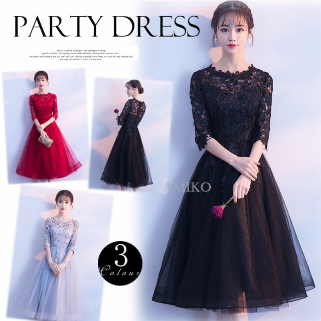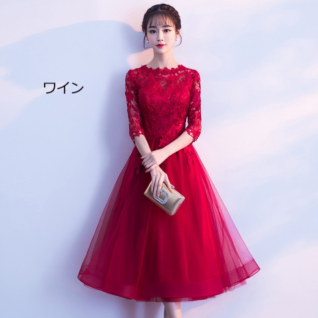 ドレス 結婚式 パーティードレス お呼ばれワンピース 五分袖 レース 二次会 花嫁 魅力 同窓会 フォーマル 披露宴 卒業式 ブライズメイドドレス ピアノ 発表会ドレス ワンピースレディースドレ 大人
