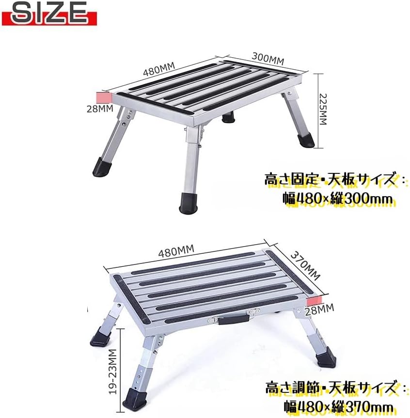 アルミ 踏み台 折り畳み 天板480M 高さ固定(天板480X300CM) 高さ調節(天板480X370CM)