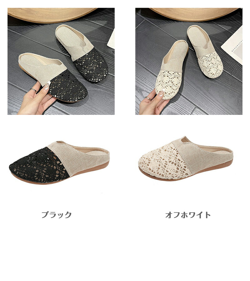 総レース メッシュサンダル サボサンダ 靴 続々登場 ブラック オフホワイト 35(22.5CM) 36(23.0CM) 37(23.5CM) 38(24.0CM) 39(24.5CM) 40(25.0CM)