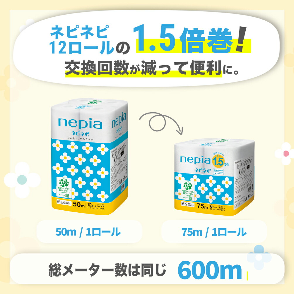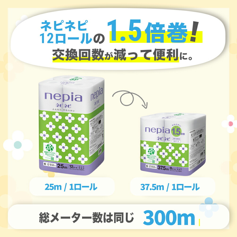 トイレットペーパー 1.5倍巻 nep シングル_75m巻 ダブル_37.5m巻