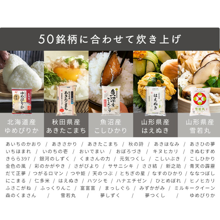 ・米銘柄:主要な銘柄を最適な火力と時間で、お米の美味しさを引き出し炊き上げます。