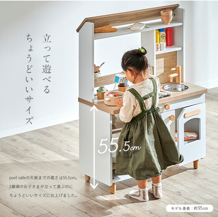 おままごとキッチン おままごと ままごとキッチン おままごとセット お店屋さん お店やさんごっこ 大きい 収納 木製 poet A type 4色対応 cafe