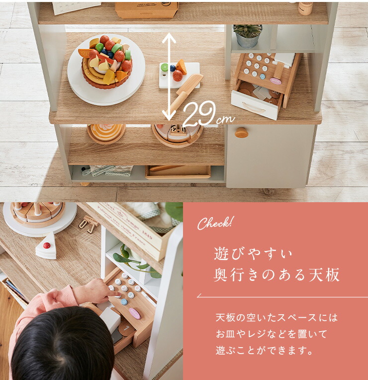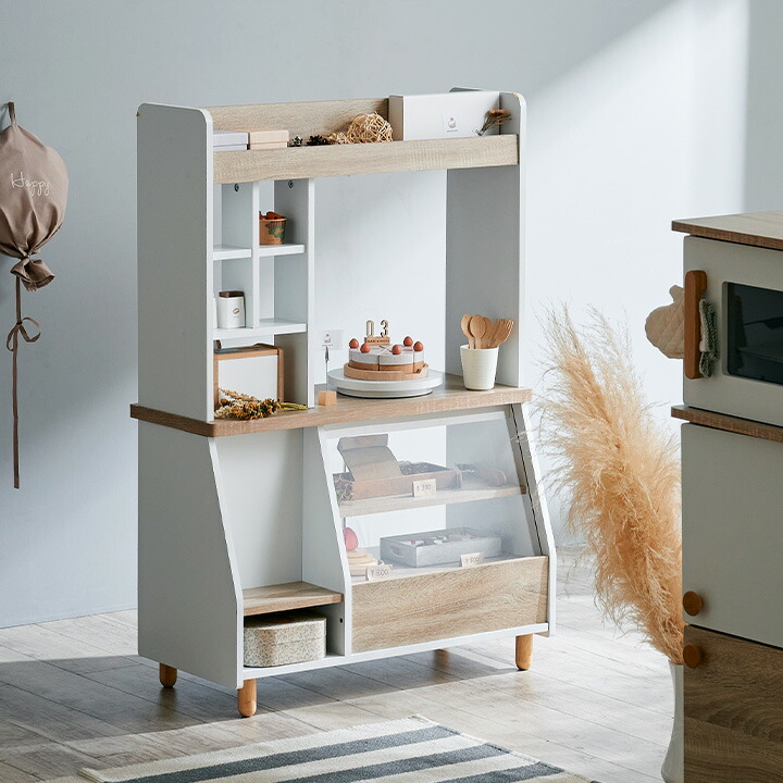 こどものいちばん身近なごっこ遊びであるおままごと。そんなおままごとの夢が叶う、対面タイプのケーキ屋さんを作りました。
