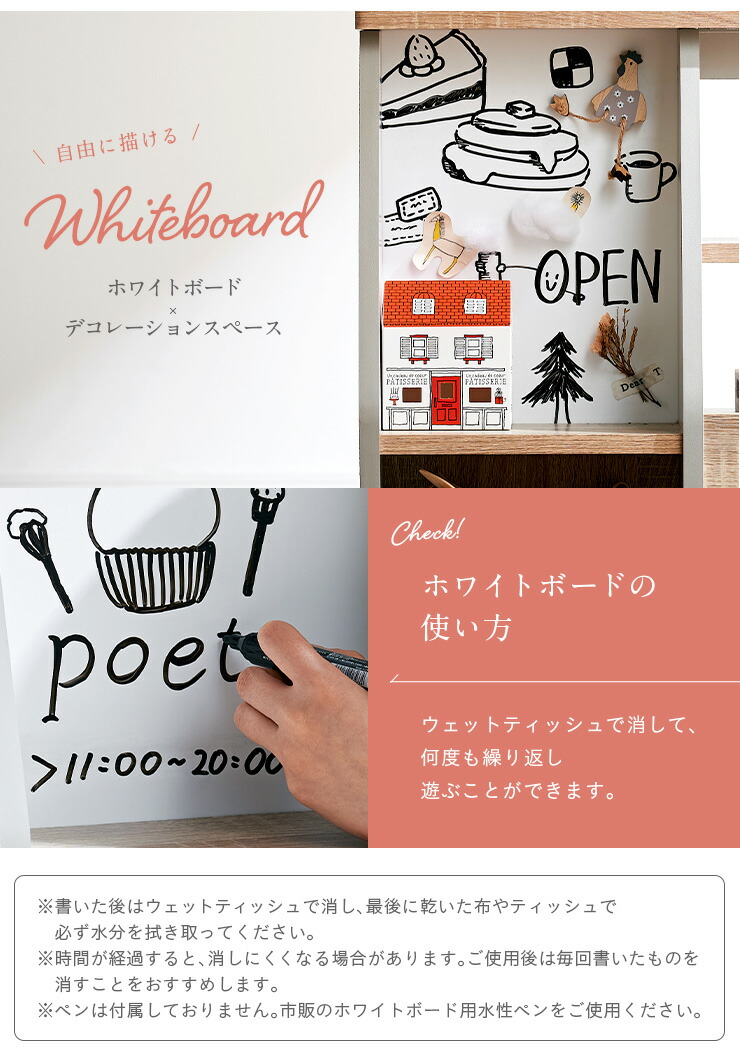 ※ペンは付属しておりません。市販のホワイトボード用水性ペンをご使用ください。