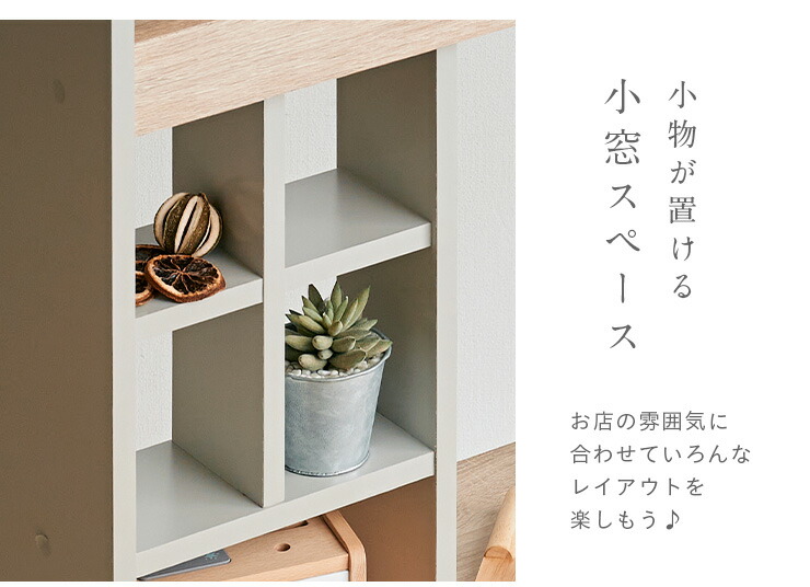 ナチュラルウッドとホワイト/グレーのツートンカラーがリビングに溶け込みます。
