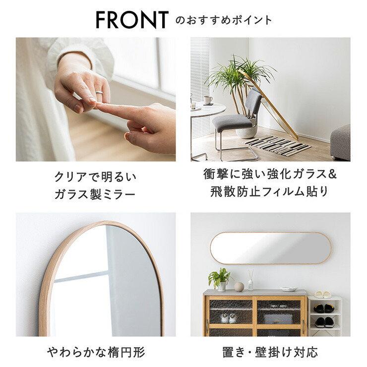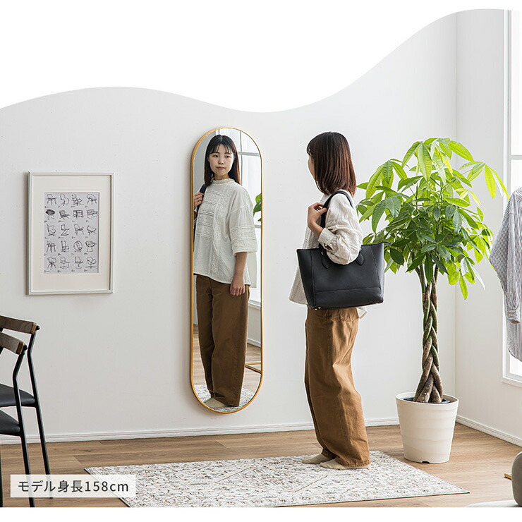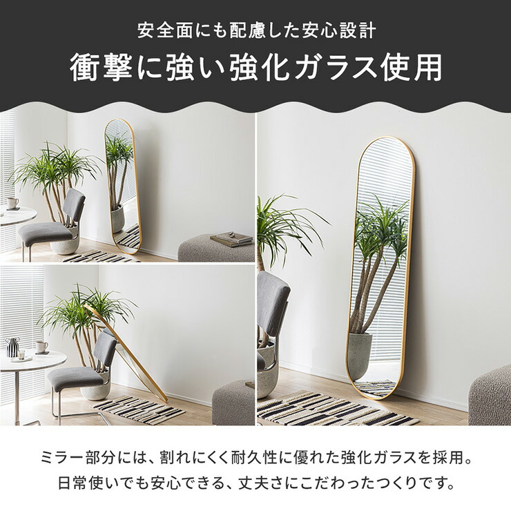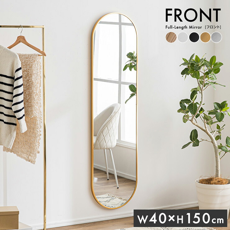 鏡 スタンドミラー 姿見 全身鏡 おしゃれ 楕円形 40x150cm Front 5色対応 ミラー 全身ミラー かがみ 壁掛け 立て掛け 大型 軽量 薄型 アルミ製 割れない 玄関 リビン 強化ガラス