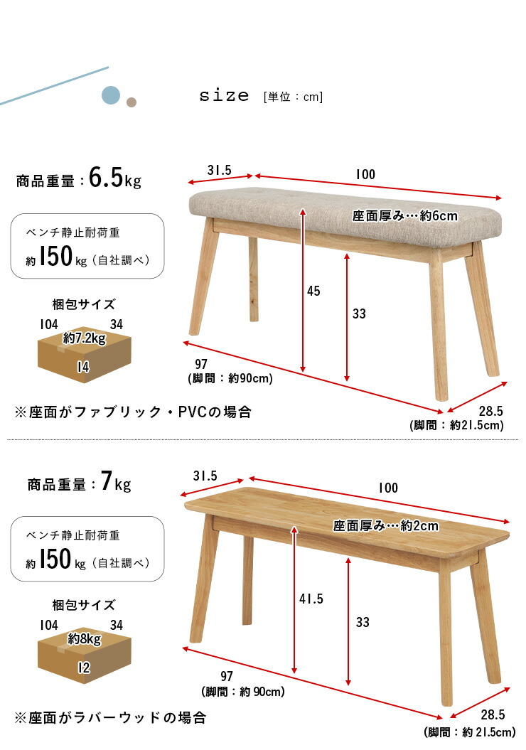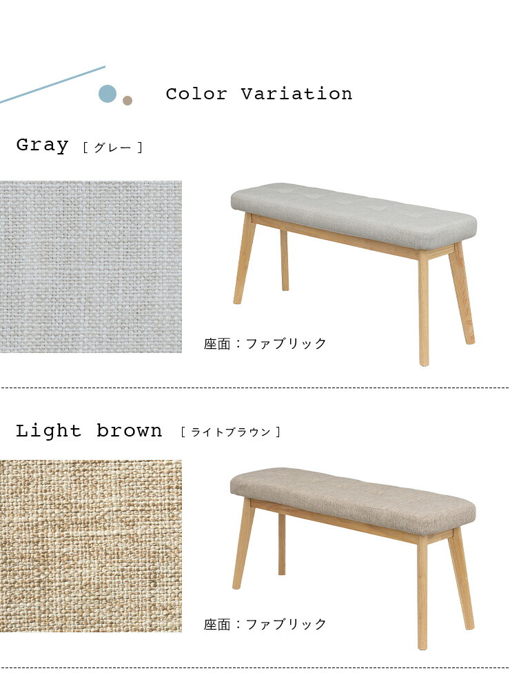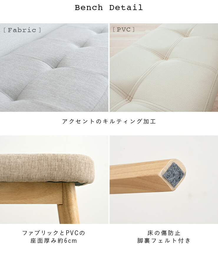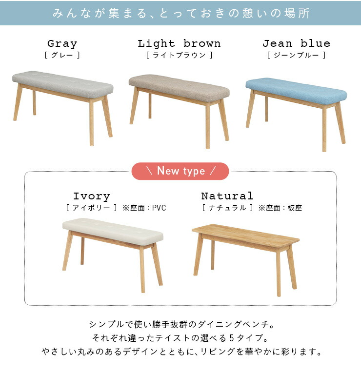 ダイニングベンチ 幅100cm Coc 在庫 グレー(ファブリック) ライトブラウン(ファブリック) ジーンブルー(ファブリック) アイボリー(PVC) ナチュラル(板座)