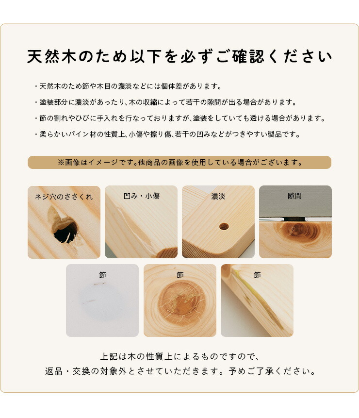 ※柔らかいパイン材の性質上、小傷や擦り傷、若干の凹みなどが付きやすい製品です。