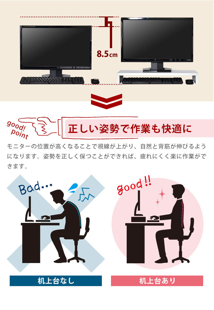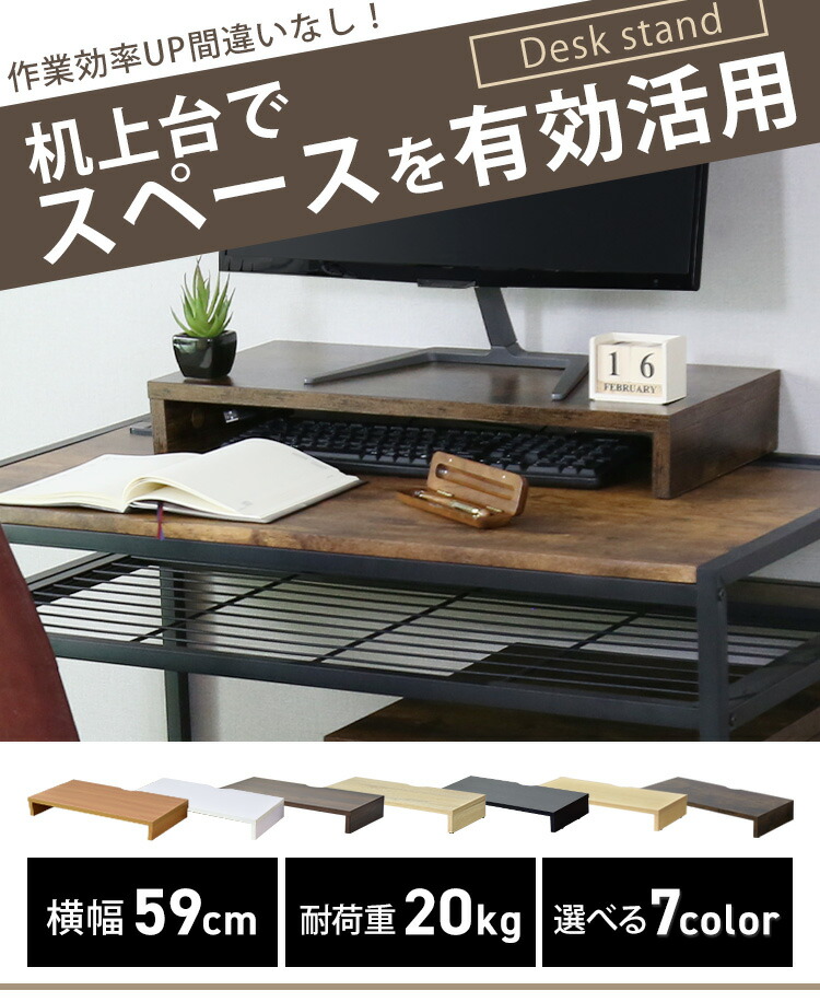 モニター台 机上ラック 幅59 奥行2 ナチュラル ホワイト ウォルナット オーク ブラック ホワイトメープル ヴィンテージ