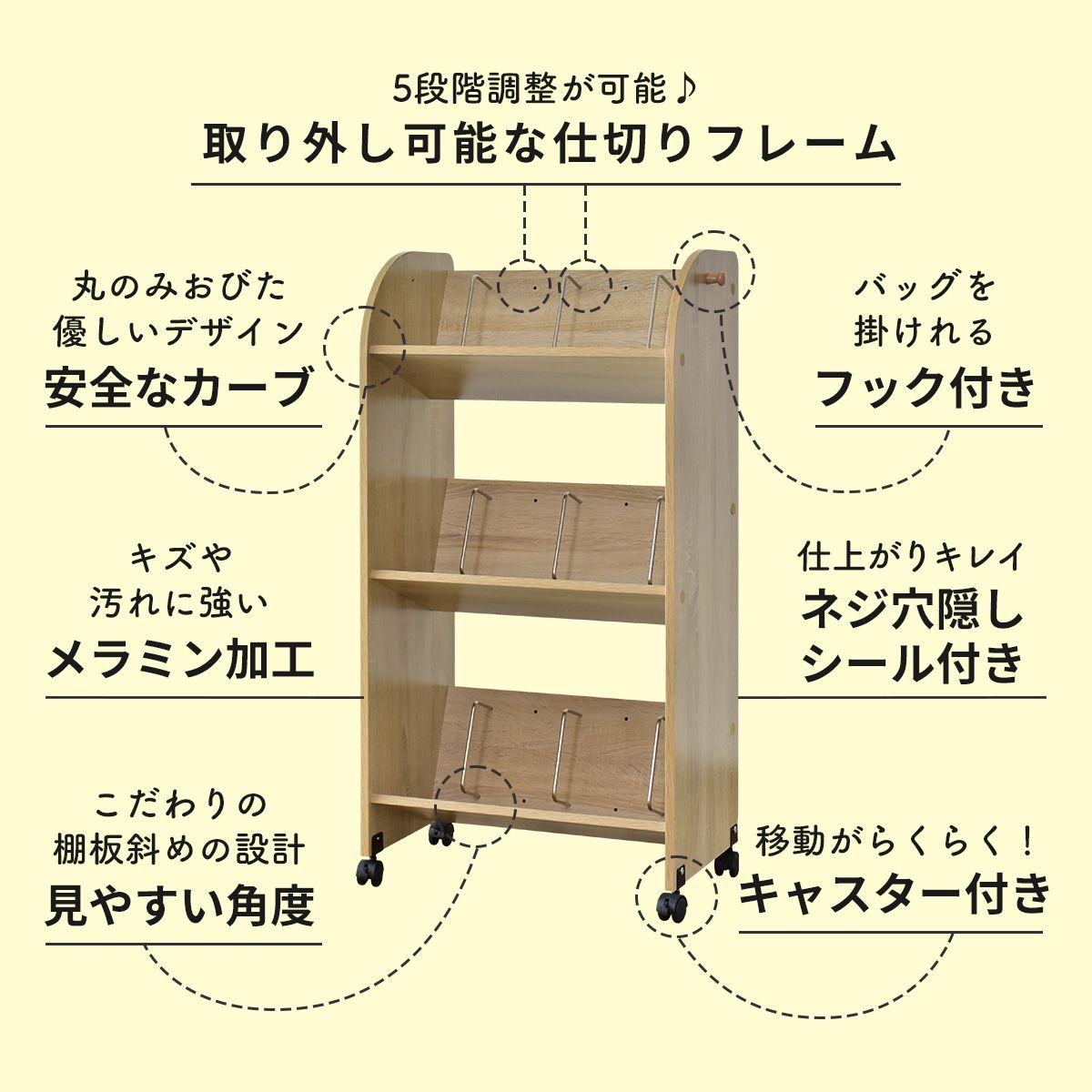 収納 ラック 本棚 収納棚 棚 ワゴン キャスター付き 3段 収納ラック ランドセルラック サイドワゴン オフィス収納 子供部屋 子供用本棚 棚付き ロ キッズ