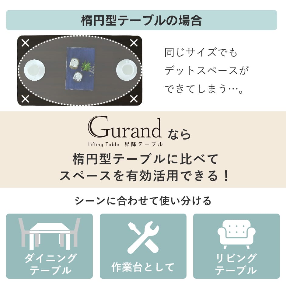 昇降テーブル 大理石調 ダイニングテーブル 無段階 ガス圧 グラン