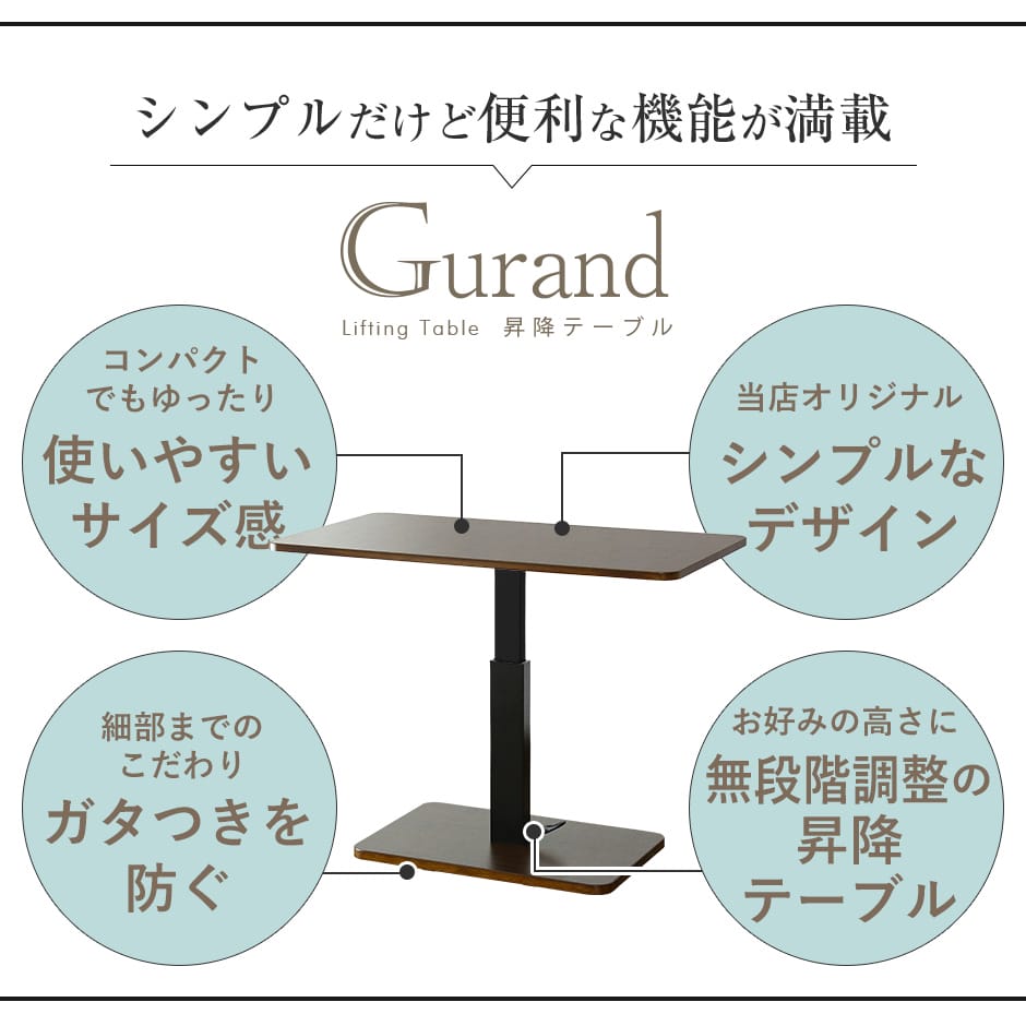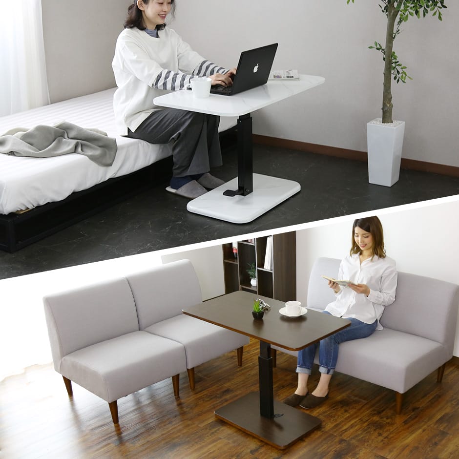 昇降テーブル 90cm 小さめ コンパ ブラウン ホワイト ウォルナット マーブル ストーングレイ