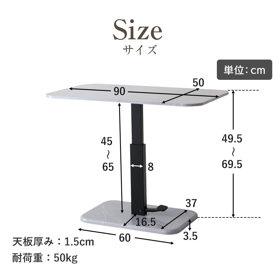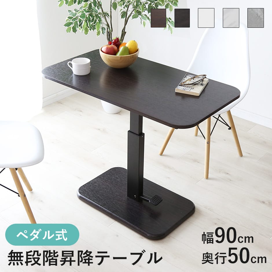 昇降テーブル 90cm 小さめ コンパクト 無段階 ガス圧 ペダル式 ペダル昇降式 幅90 高さ調節 ダイニングテーブル ローテーブル ロースタイル ソファテーブル リフティングテーブル ロータイプ