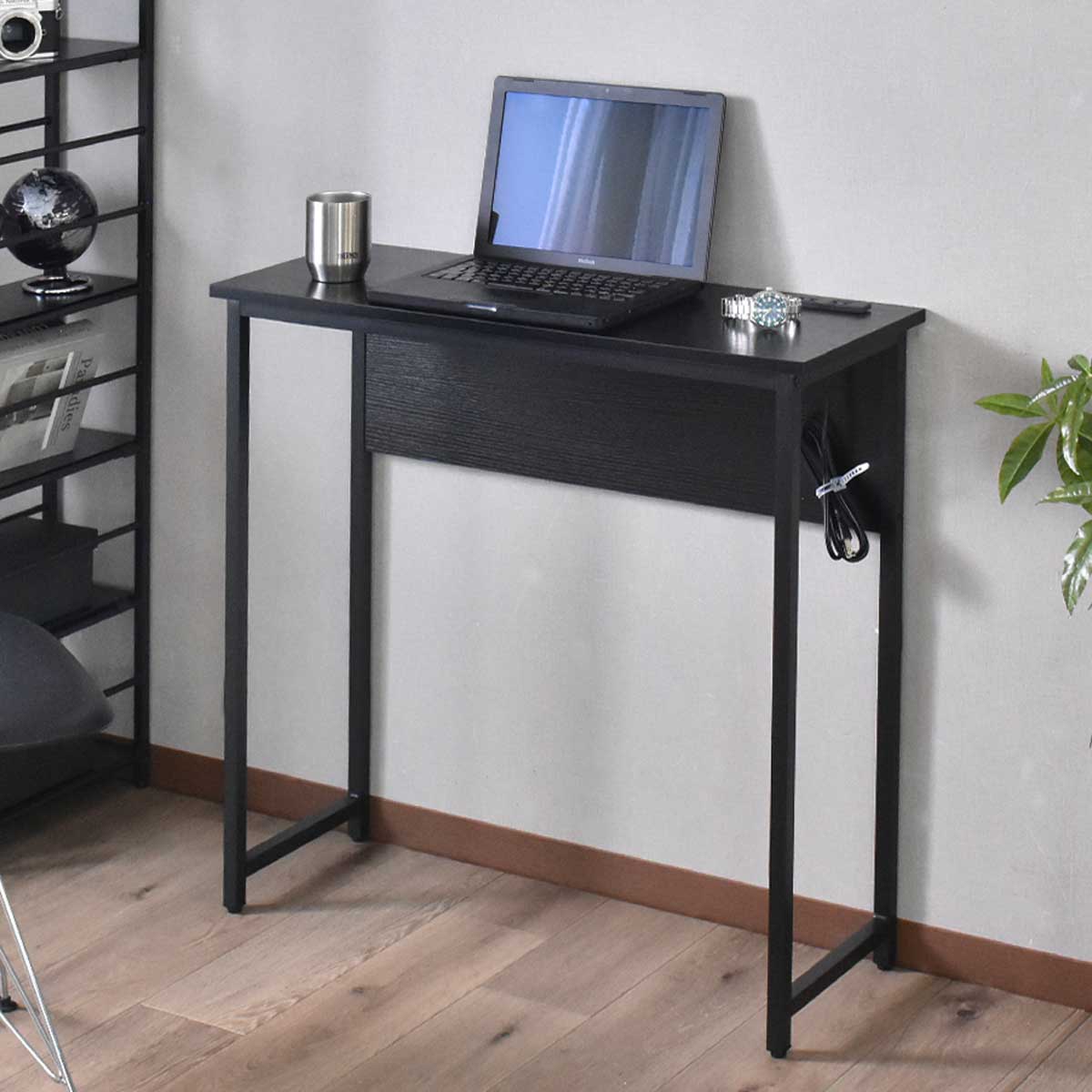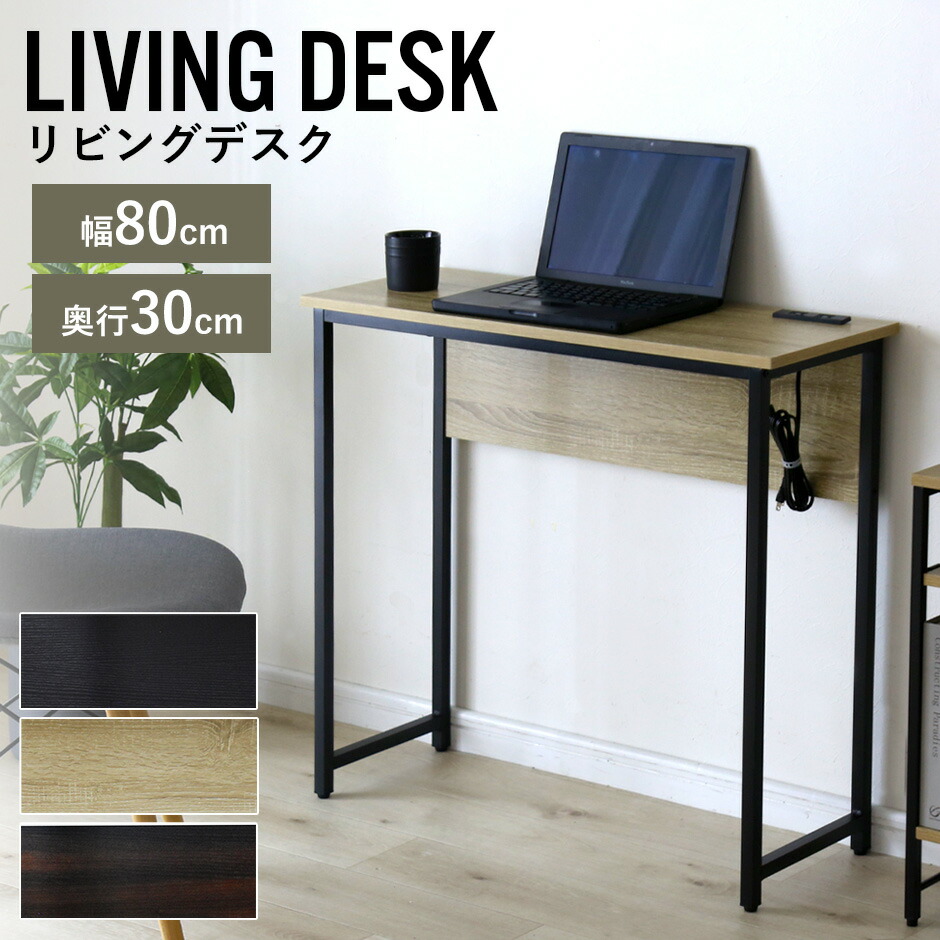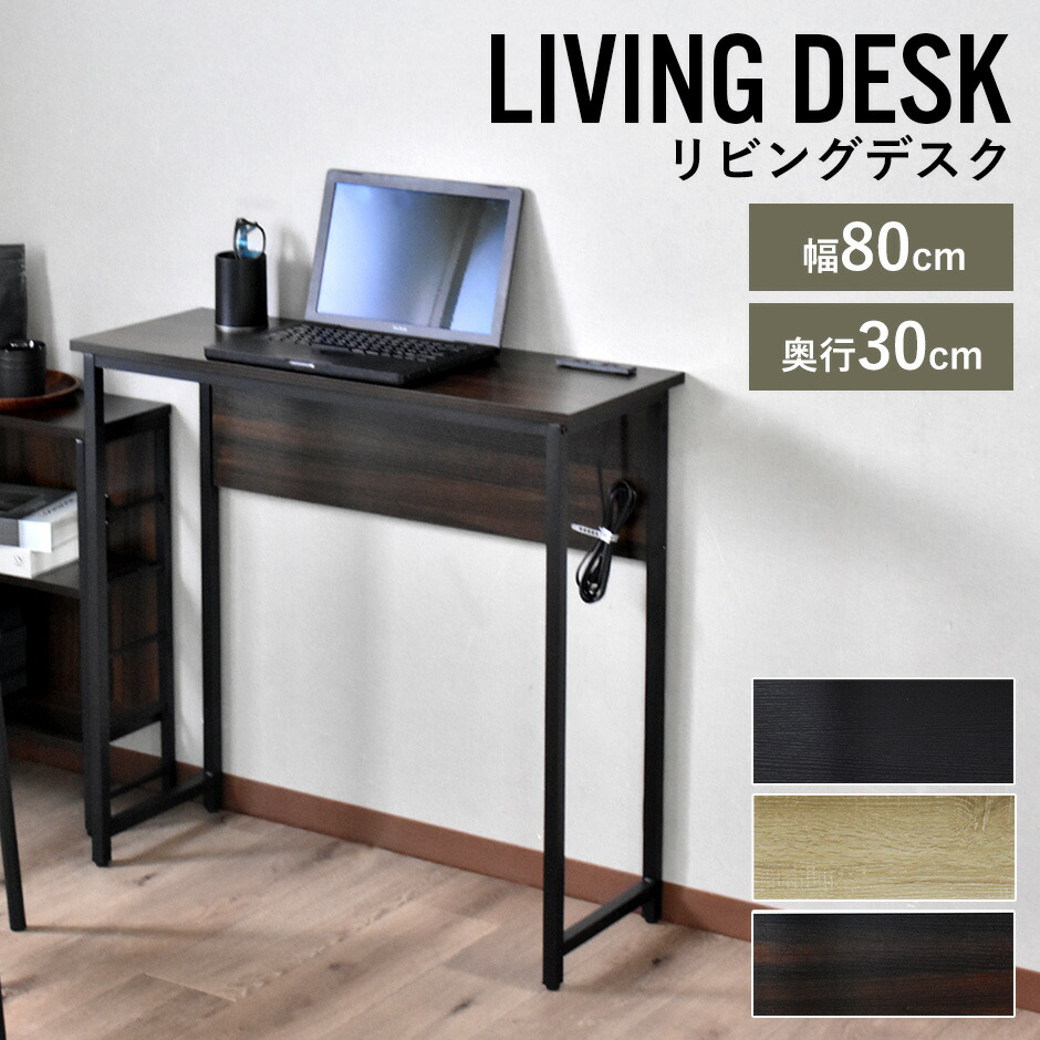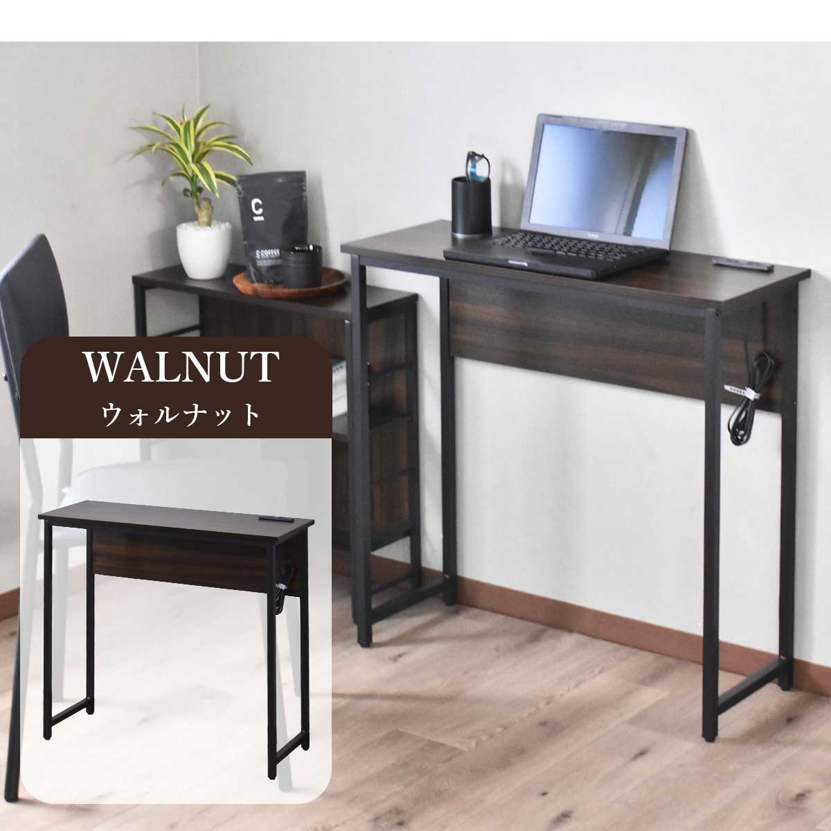 デスク パソコンデスク 幅80 奥行30 コンパクト スリムタイプ 省スペース 薄型 木目調 コンセント 2口付き スマホ充電 PCデスク 机 勉強机 リビング pcデスク ワークデスク 学習机