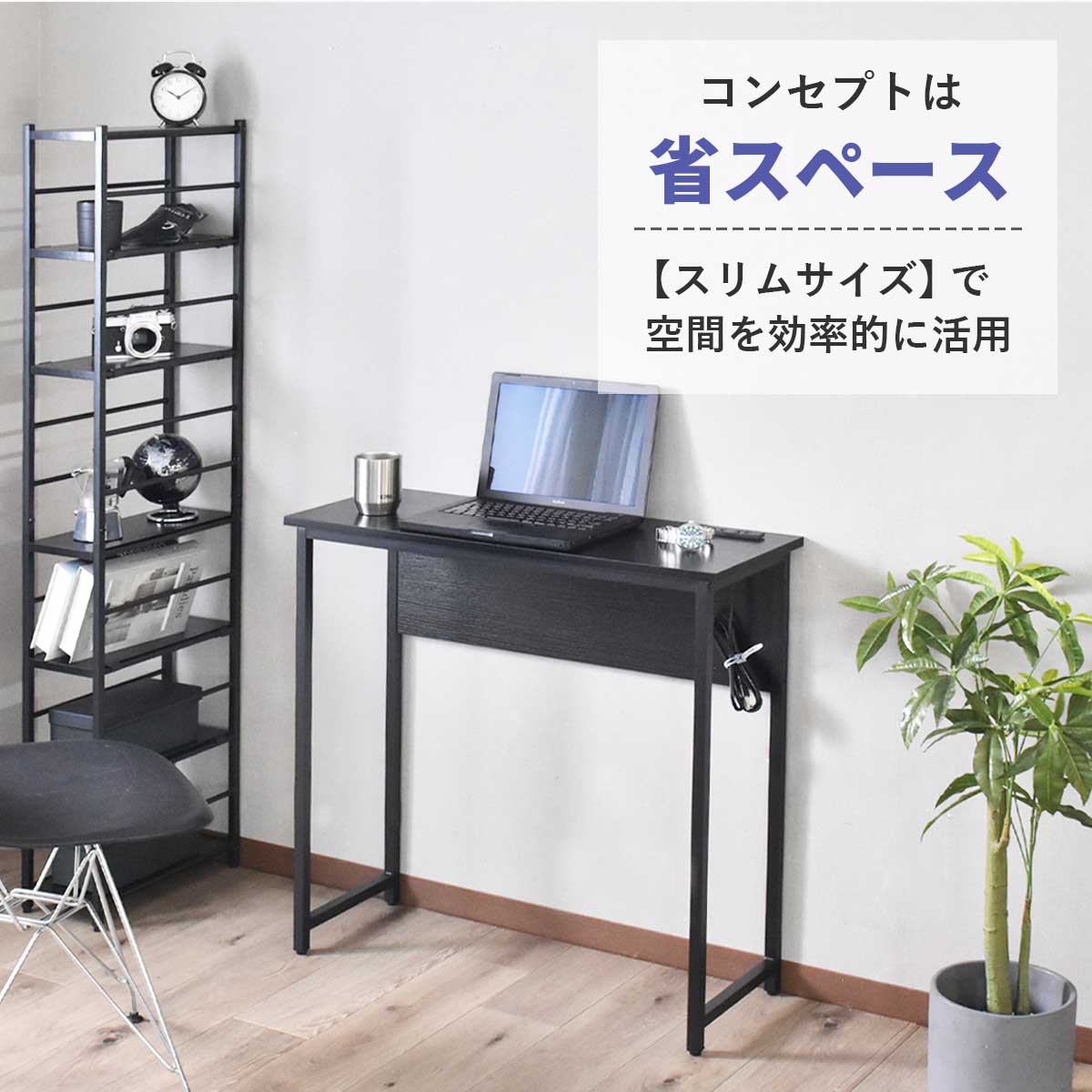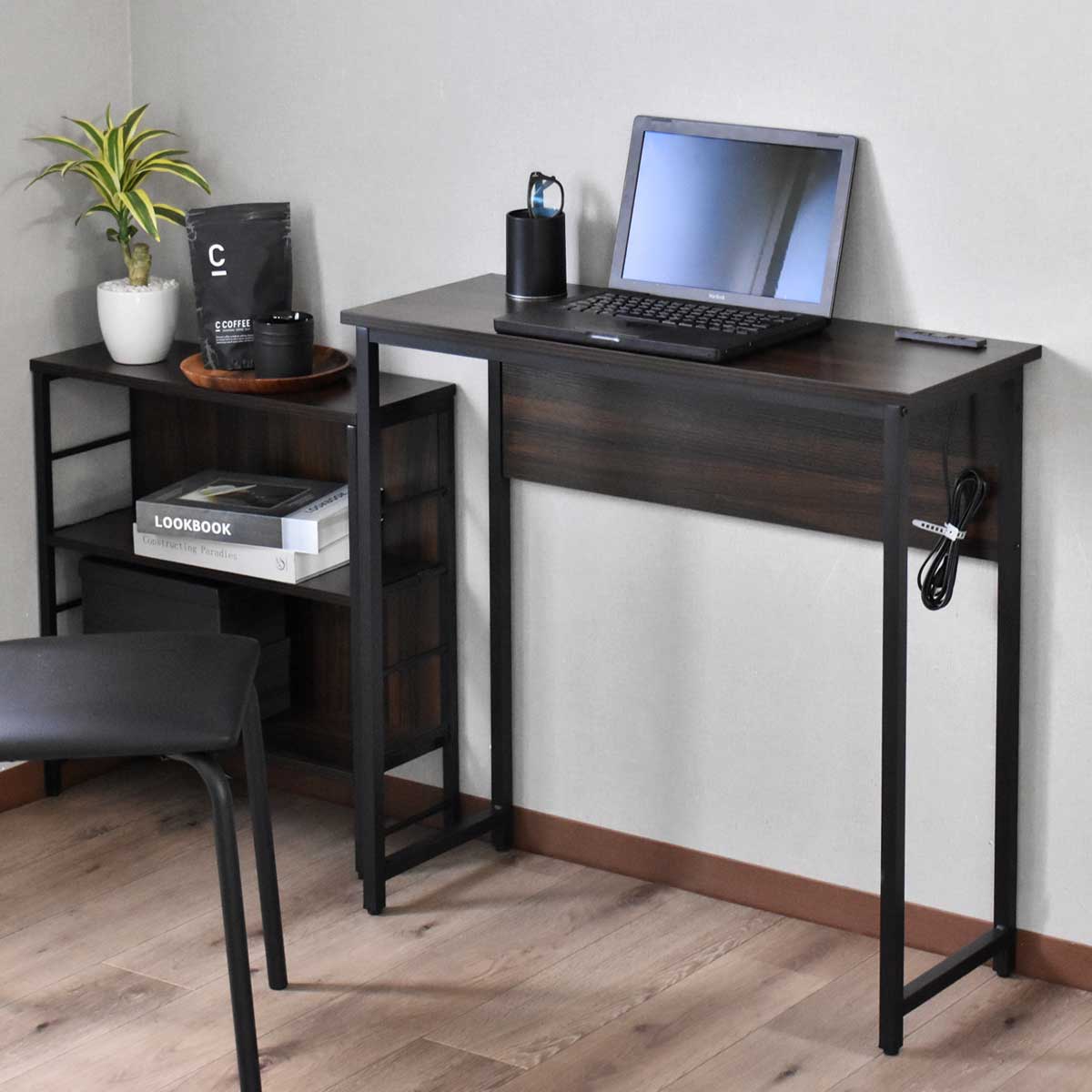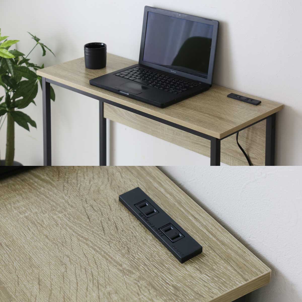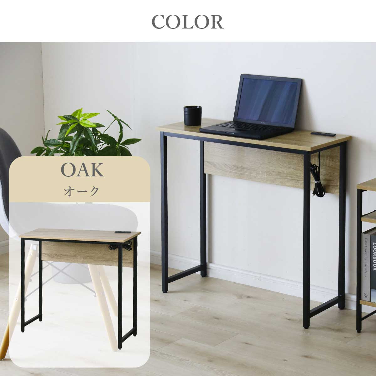 デスク パソコンデスク 幅80 奥行30 コンパクト スリムタイプ 省スペース 薄型 木目調 コンセント 2口付き スマホ充電 PCデスク 机 勉強机 リビング pcデスク ワークデスク 学習机