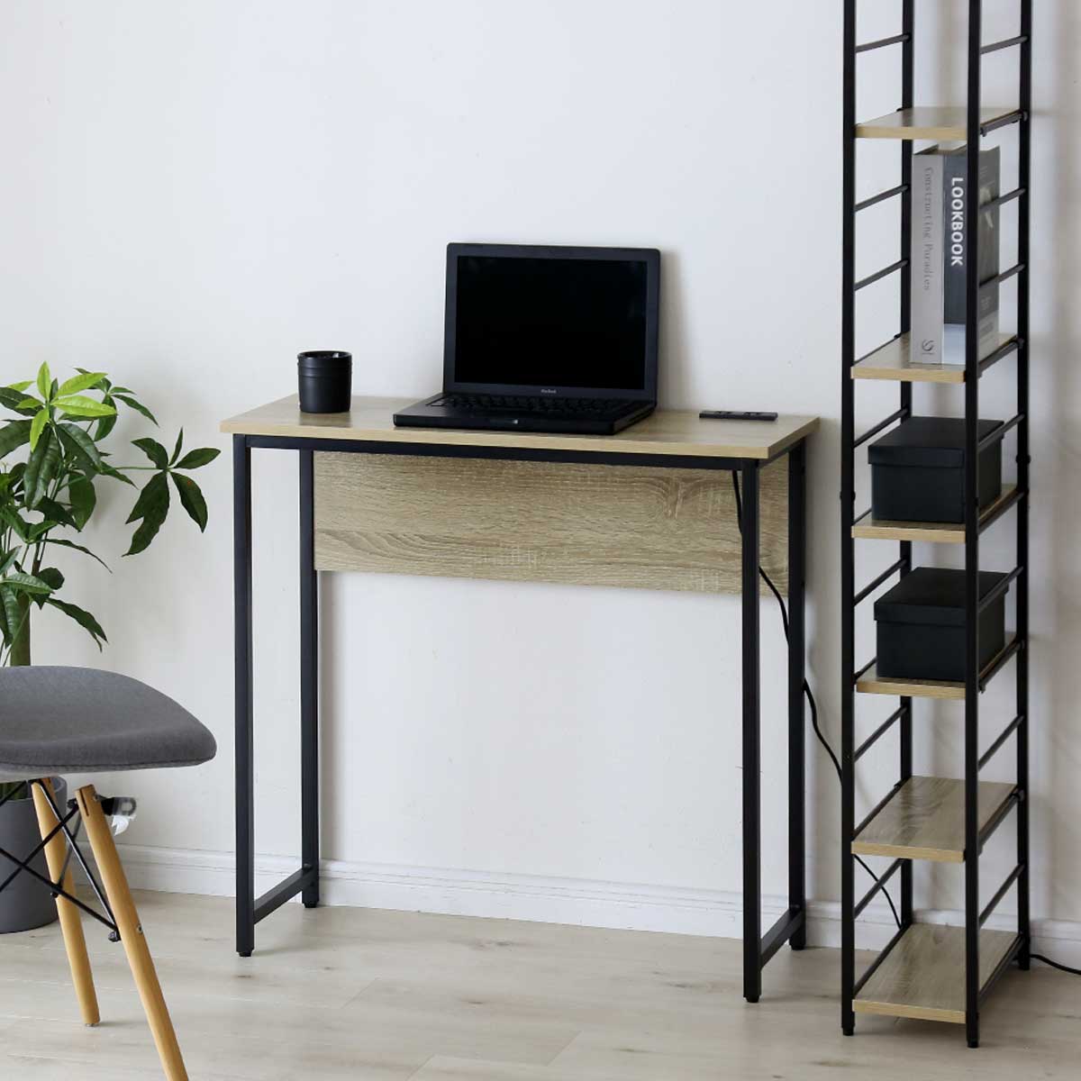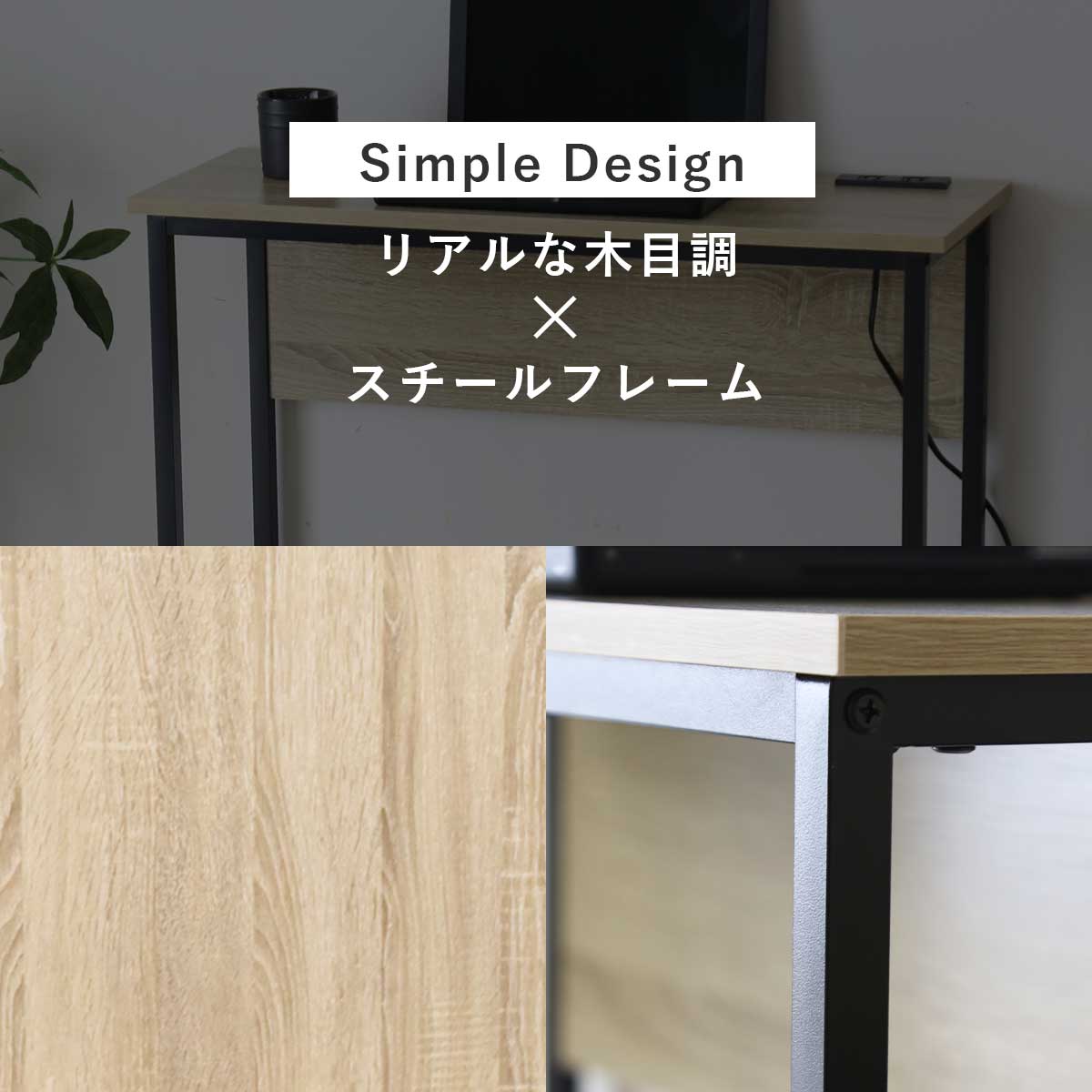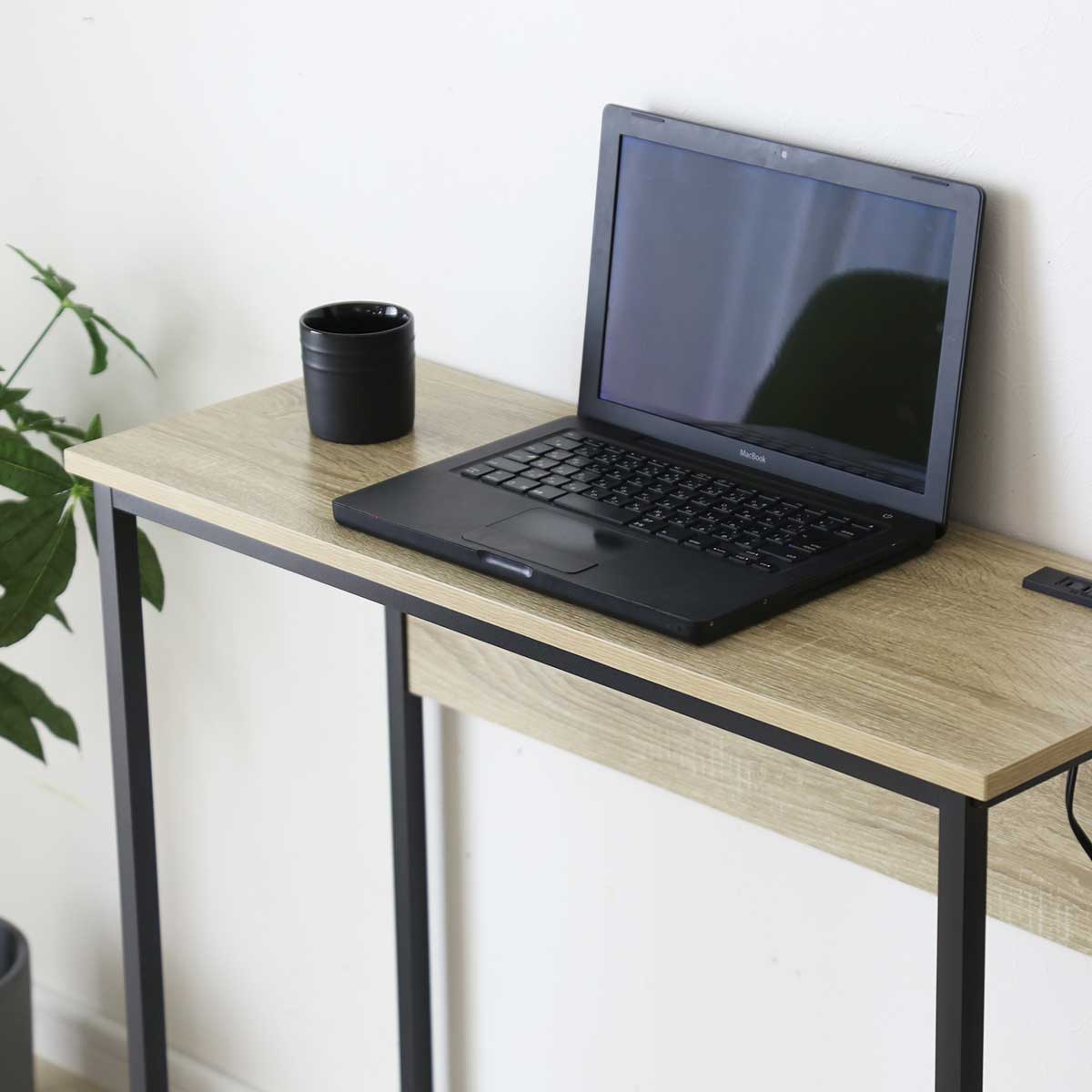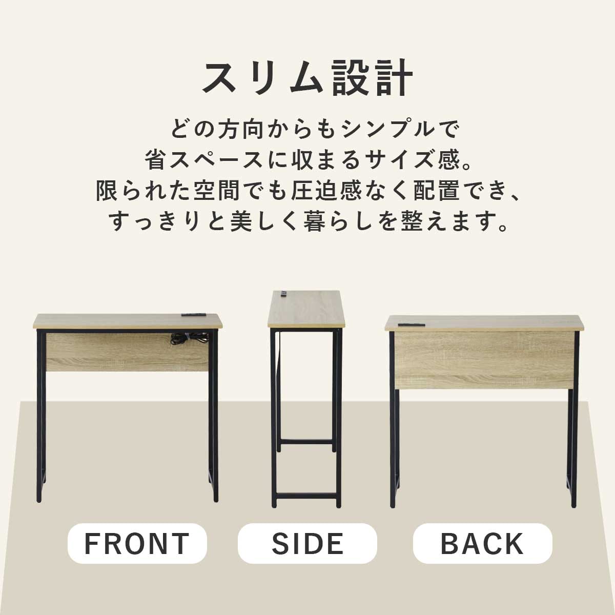 デスク パソコンデスク 幅80 奥行30 コンパクト スリムタイプ 省スペース 薄型 木目調 コンセント 2口付き スマホ充電 PCデスク 机 勉強机 リビング pcデスク ワークデスク 学習机