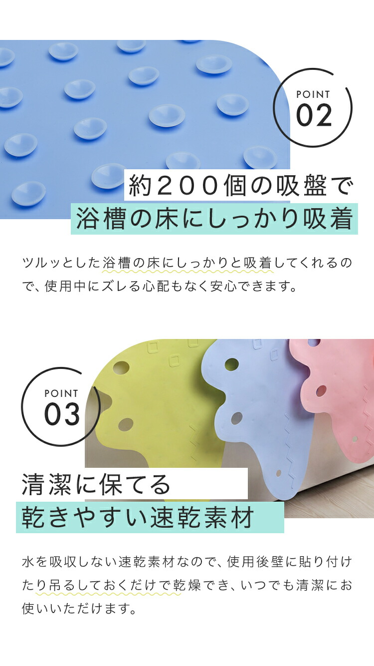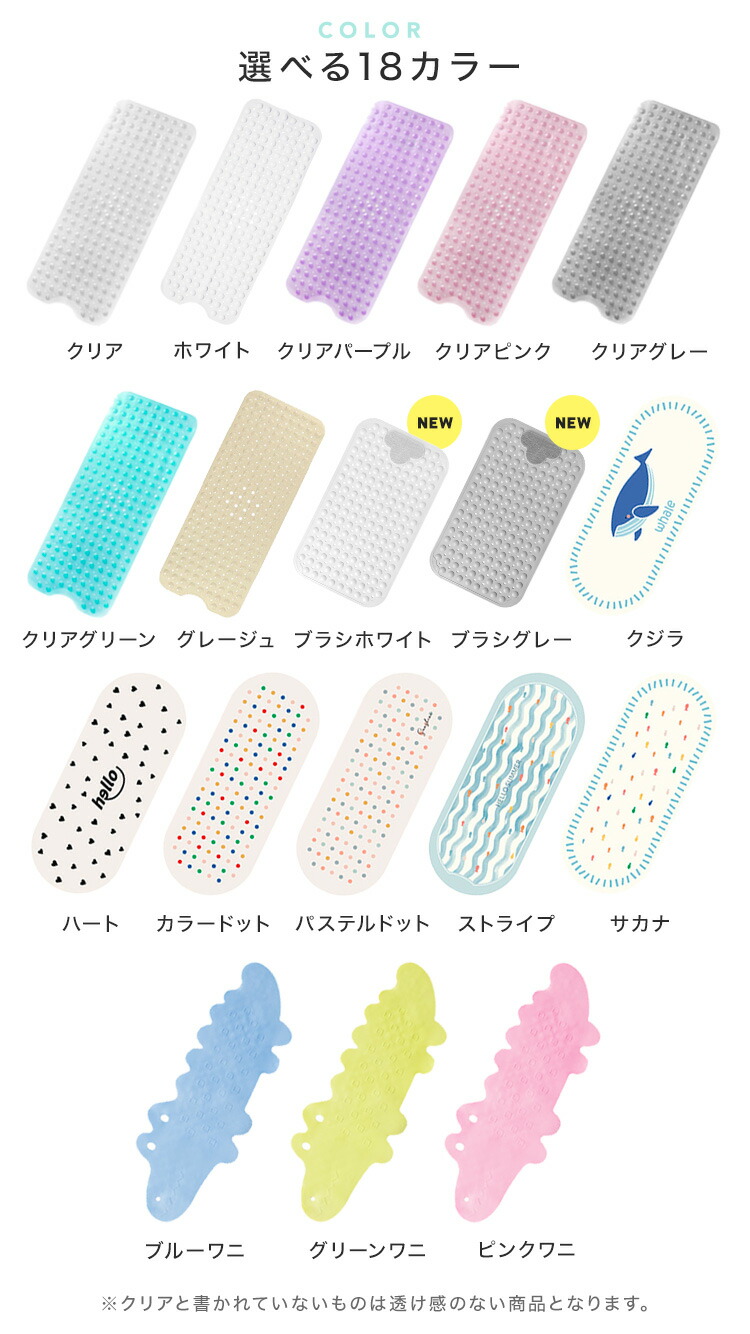 浴槽滑り止めマット 介護用品 転倒防止 バス用品 浴槽 浴室内マット 特集 クリア ホワイト クリアパープル クリアピンク クリアグレー クリアグリーン グレージュ ブラシホワイト ブラシグレー クジラ ハート カラードット パステルドット ストライプ サカナ ブルーワニ グリーンワニ ピンクワニ