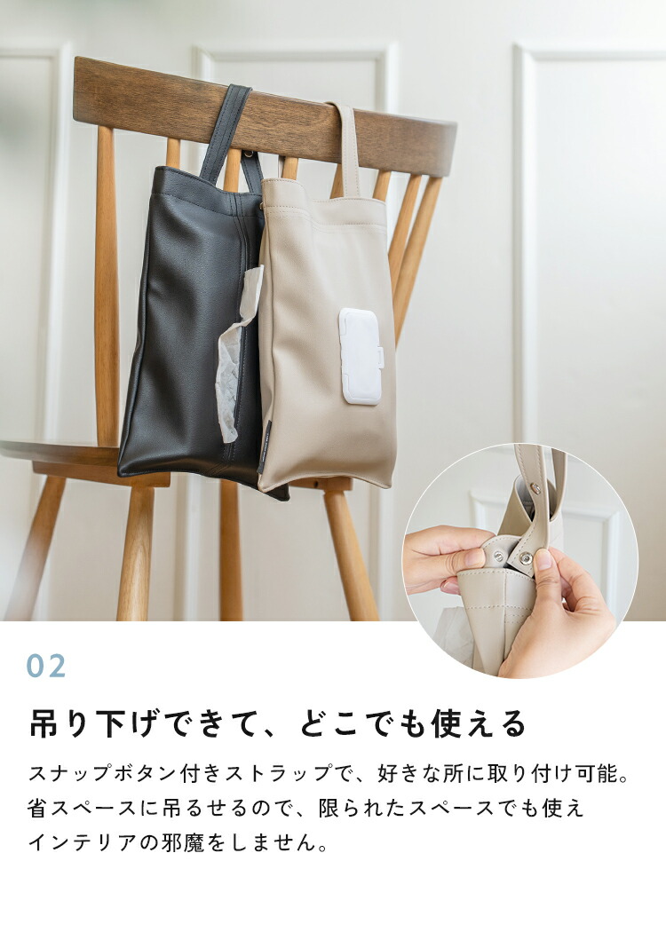 ティッシュケース 吊り下げ ウェットティッシュケース ティッシュケース おしゃれ ティッシュケース 車 ティッシュケース かわいい 韓国 北欧 インテリア ティッシュケース 壁掛け 車用ウェットティッシュケース PUレザー ウェットティッシュ ケース ティッシュボックス ティッシュカバー ソフトパック おしり拭き 持ち運び 2way そのまま 入れるだけ 両面 収納 グッズ スナップボタン 縦 縦型 スリム ティッシュ ケース モダン ナチュラル ブラック 黒 グレージュ ティッシュケース 新生活 新居 自立 一人暮らし 生活用品 トイレ ベッド横 キッチン 洗面台 洗面所 リビング 寝室 便利 雑貨 アウトドア キャンプ用品 キャンプギア レジャー お出かけ ベビーカー 車用 カー用品 便利グッズ